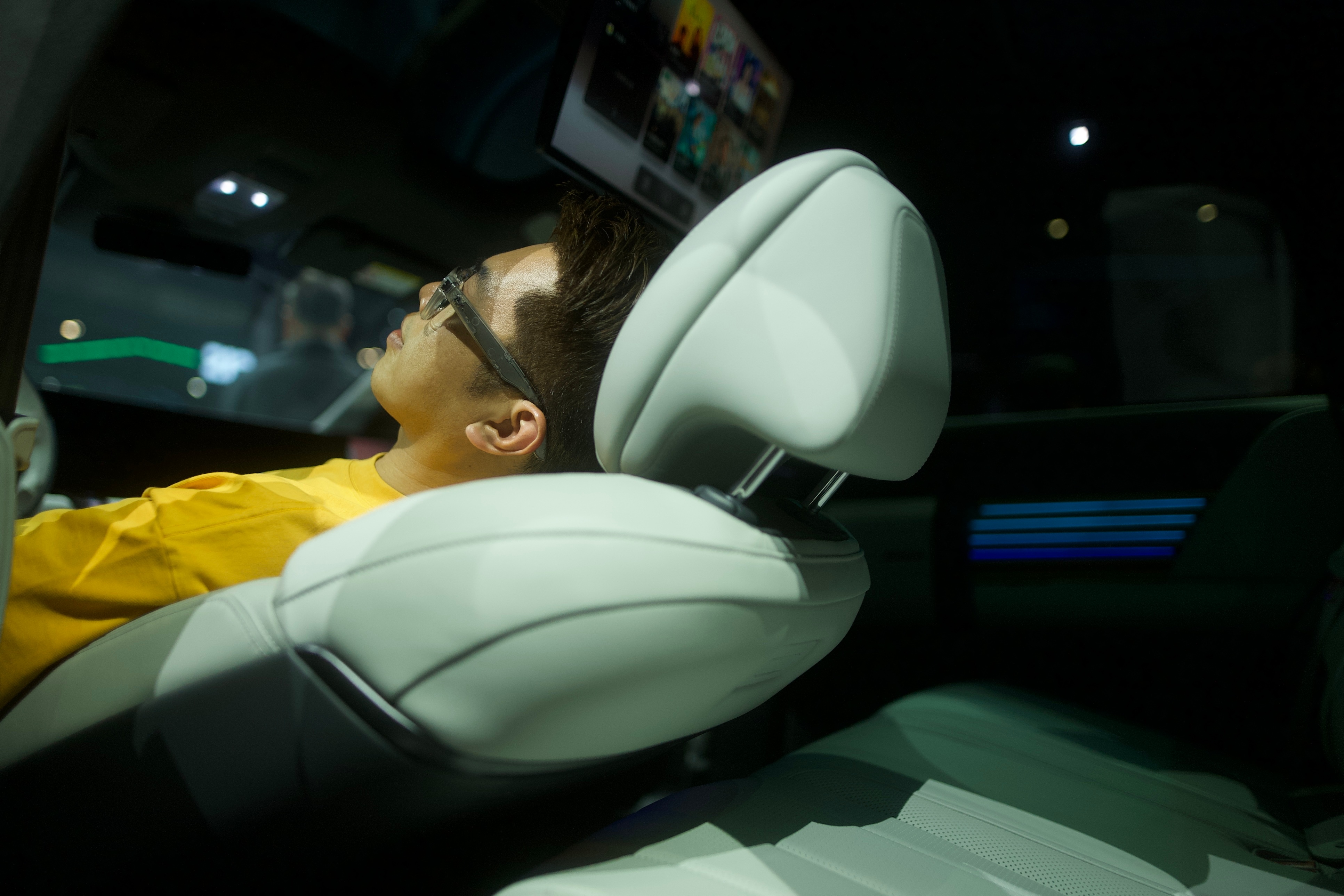 北京车展奥迪E7X那张床出圈了真心劝来北京车展的朋友,一定要去奥迪E7X车里待几分钟!我本来就是随便逛逛,一坐进去直接被惊艳到。这就是北京车展这车有个自定义场景模式功能,一句话就能切场景。比如“带娃”:自动锁车、调灯光、播动画片,开车不用分心管娃。当然还有“小憩模式”:关上车门,零重力座椅一键躺平,腿托升起直接变身成“一张床”,Bose音响切换出环绕海浪声,座椅按摩开启,超长腿托展开,整个人像被云托住。现场人多嘈杂,车门一关直接变成安静桃花源——我在里面也就闭上眼缓了一刻钟,起来之后腿不酸了、头不沉了,那种从里到外的轻松,像在家睡了踏实的午觉,电子手环居然显示血氧升高、心率变慢,看来是真的放松。