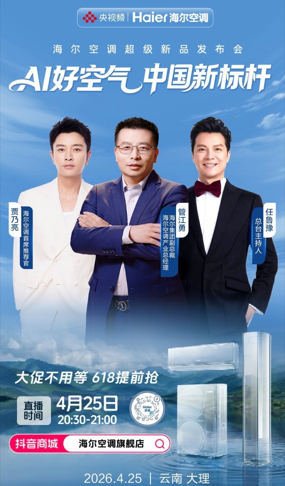 周总这次说的洗空气空调,我猜测就是把温控、空气净化、除菌和调湿都聚合在一起,实现“健康风”,开着空调也能呼吸到像户外一样清新的空气了。很期待今晚的发布会了