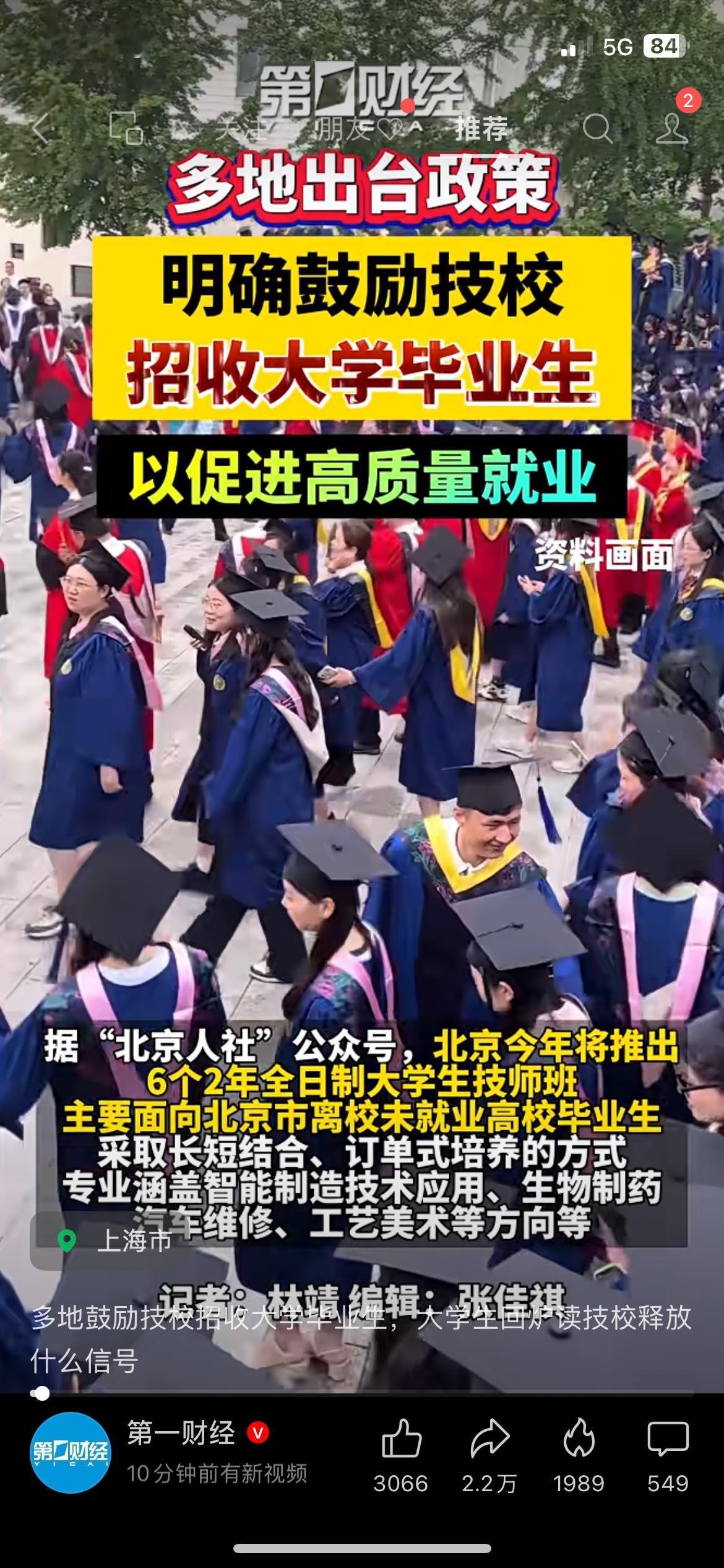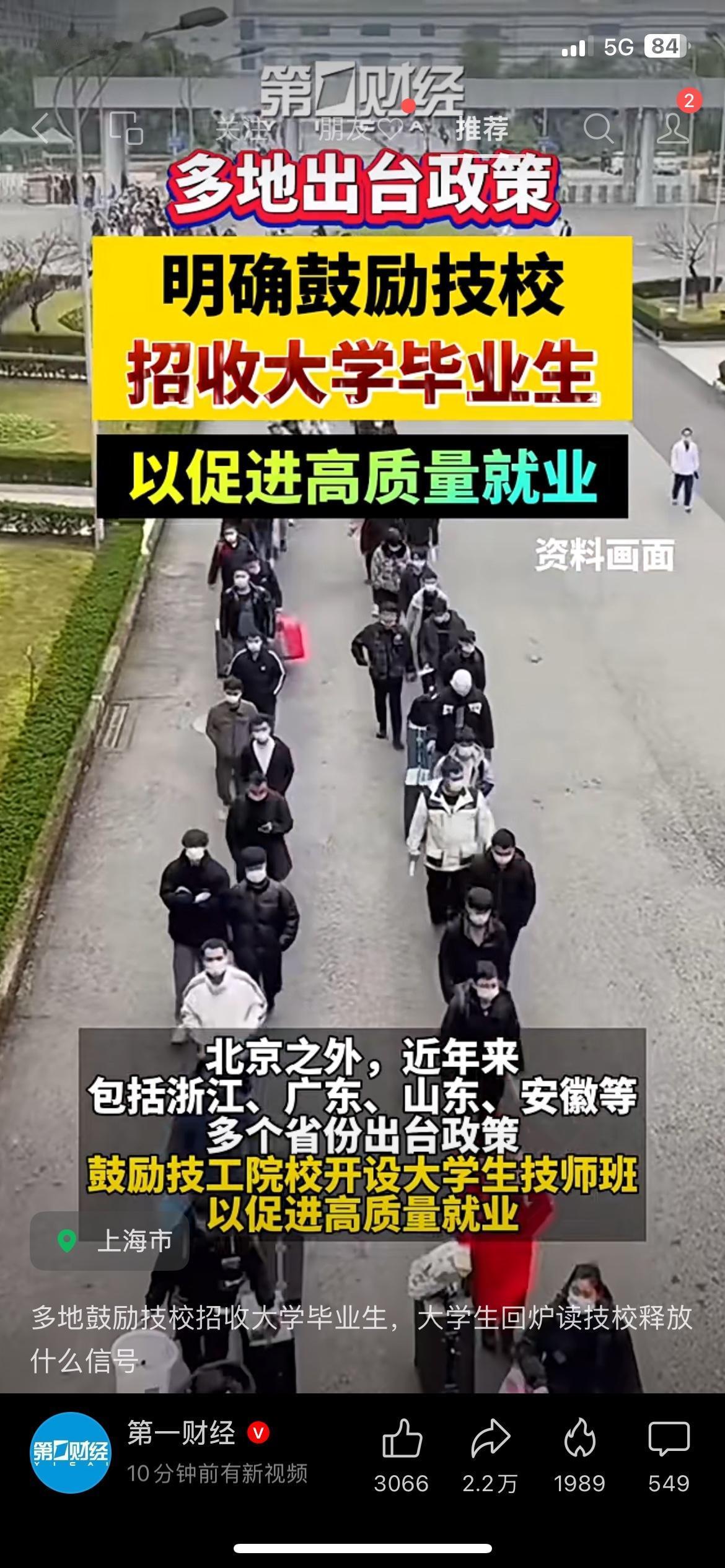现在不少地方开始鼓励大学生回技校学技术,北京还专门开了技师班。