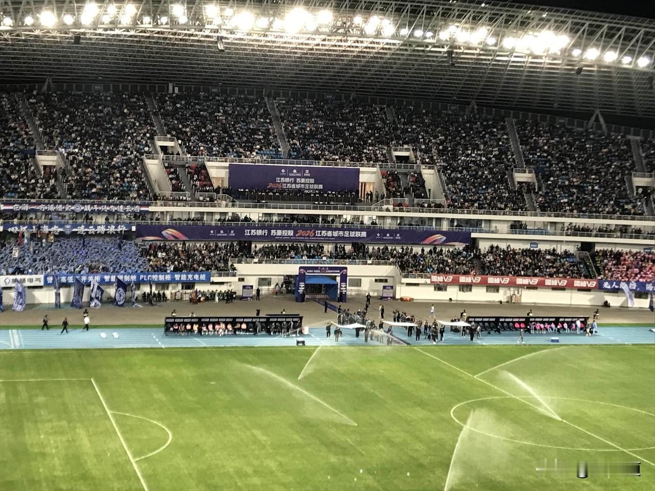 连锡一家亲。苏超连云港主场对阵无锡队的比赛还未开始,全场多次响起欢迎无锡队的欢呼声。“欢迎无锡队”“欢迎无锡队”。海湖相连,连锡相通。比赛第一,友谊第一。连云港第二个主场能否一扫今年首场颓势,取得胜利呢?我们试目以待。