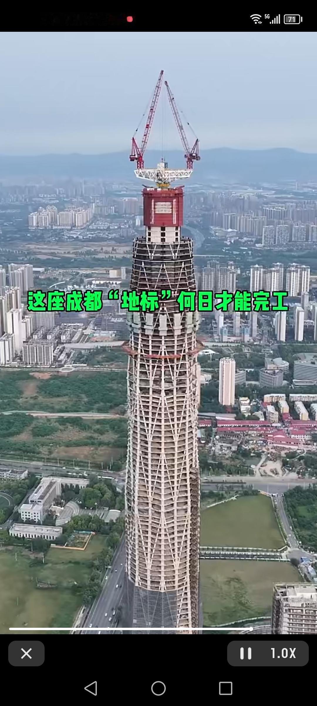 不过这楼至今没完工,像个没完成的大骨架。它每层平面面积不同,外框巨柱倾斜,核心筒斜墙施工难度大。工程一波三折,停停建建。但好消息是,2026年它将迎来新生,现在复工进度明显加快,人员和材料进出都变多了,期待它完工成为成都地标。