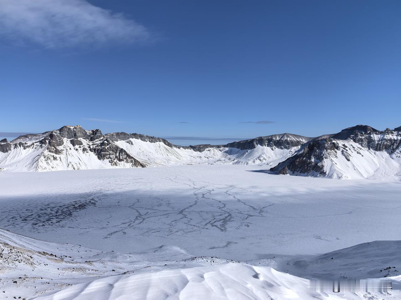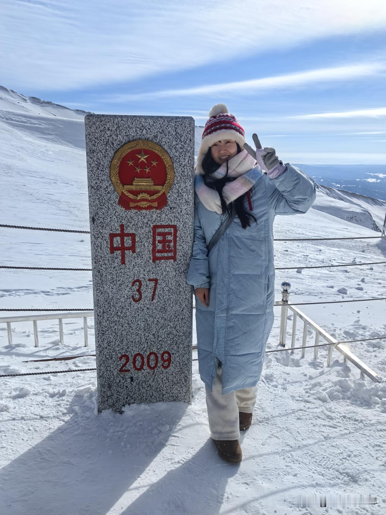 天池观景台挺大,亲眼看到冰封天池,景致非常震撼!!现在去应该还是结冰的,听说要六月才解冻。拍完天池,再去排队拍37号界碑,海拔2470米登顶成功牌…虽不会高反,但说真的挺冷,全副武装很有必要。