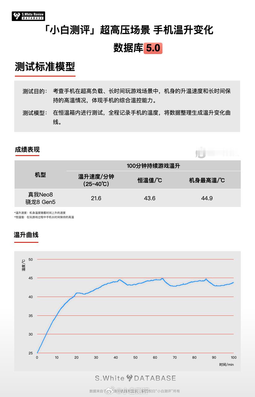 小白测评数据库5.0环境温25℃±0.5℃,屏幕亮度350nits,续航测试:全新机械臂操作、高速相机进行数据采样
