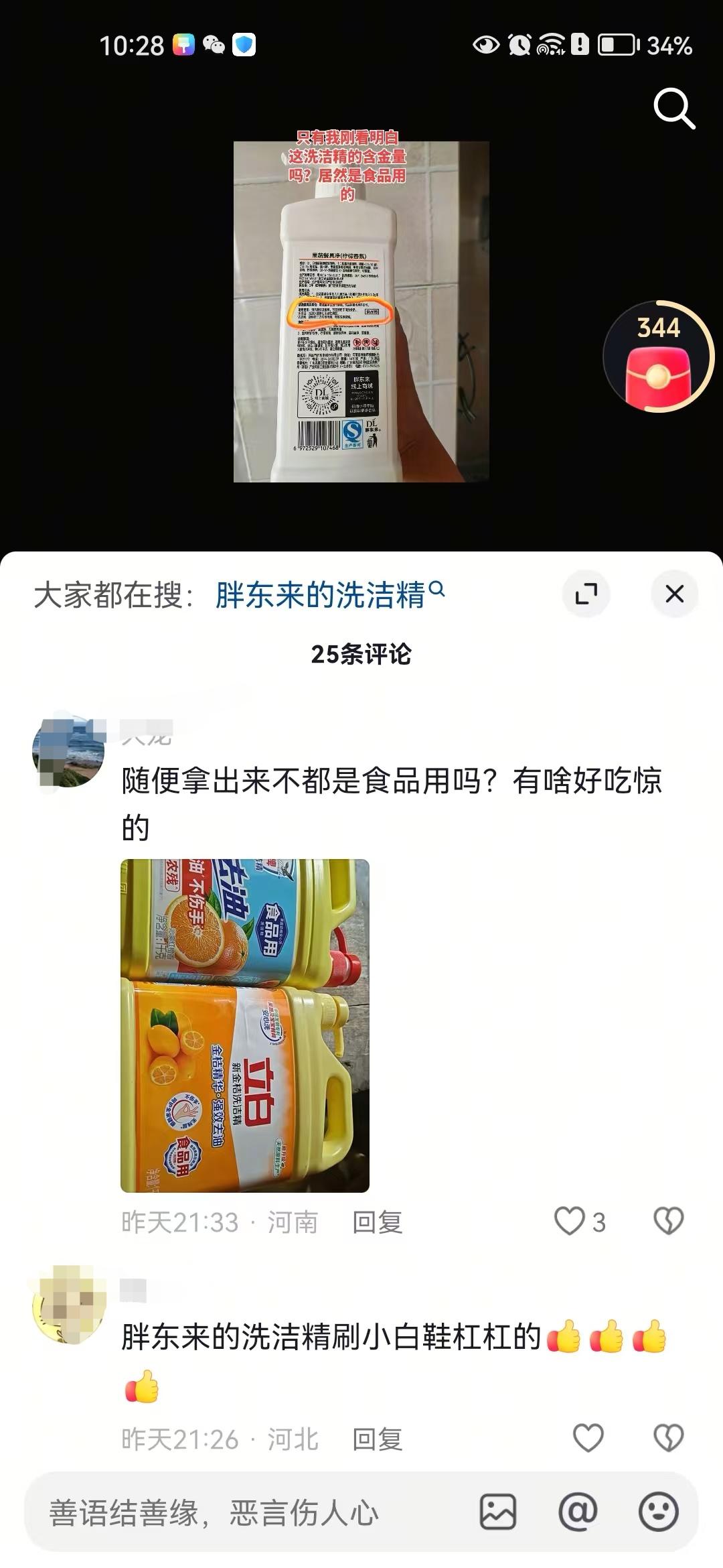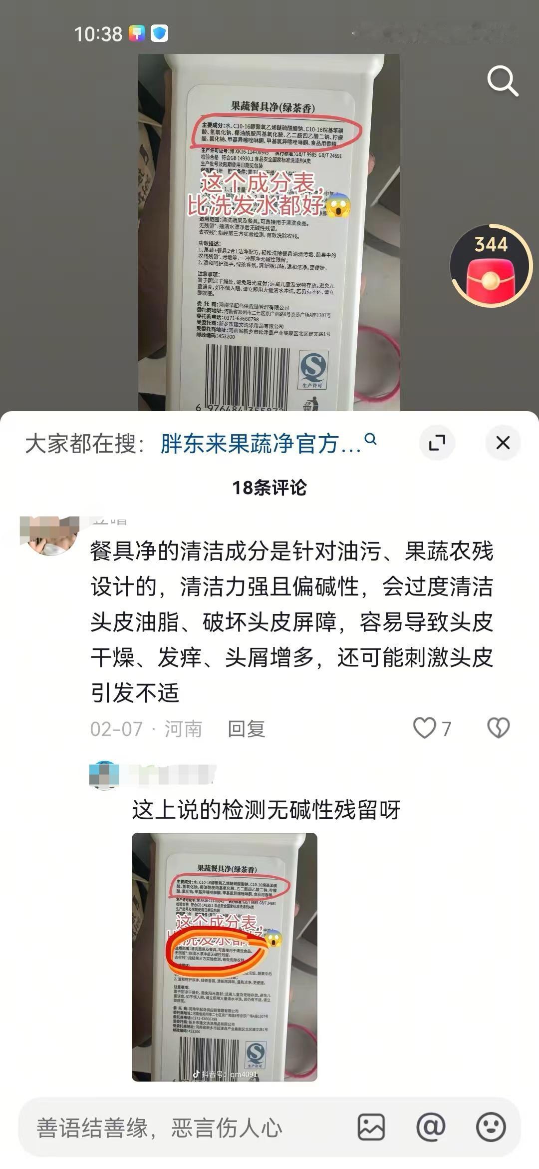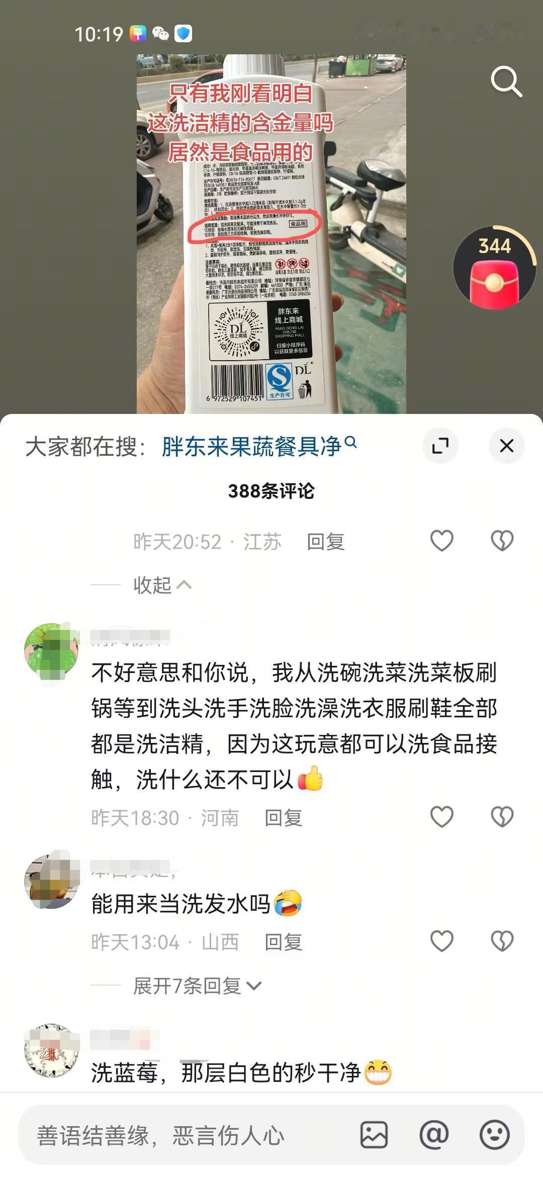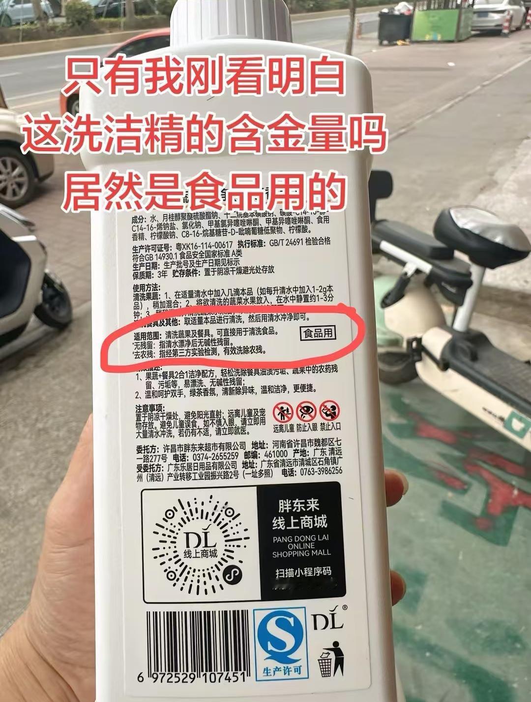 然而,能做到食品级的洗洁精不仅仅只有胖东来一家,市面上普遍的果蔬餐具净都能做到,因为名字就已经包含了果蔬。
