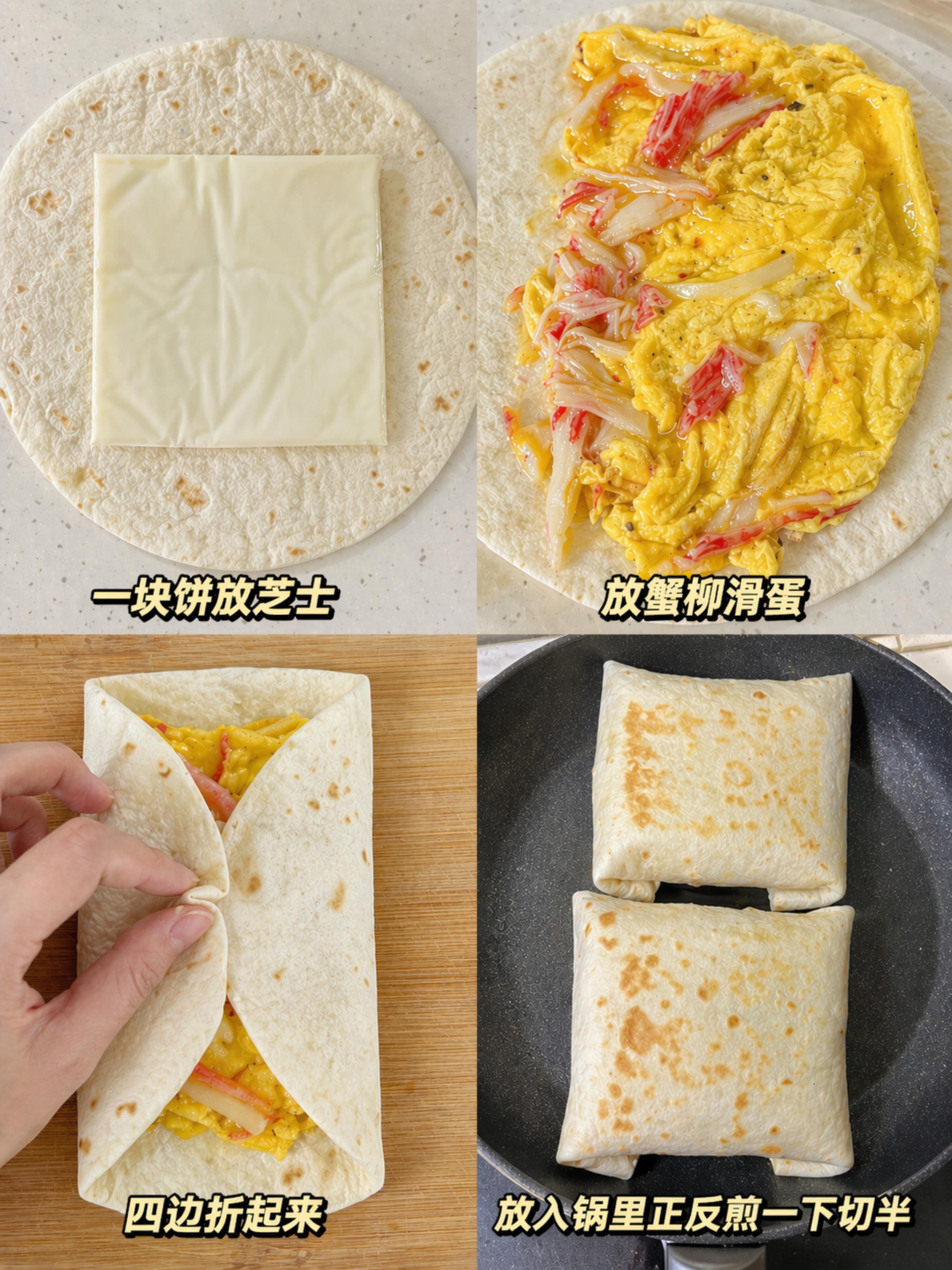早餐不知道吃什么?这款5分钟就能做好的低卡蟹柳芝士卷饼,一定要锁死!快手又解馋,新手也能零失败~