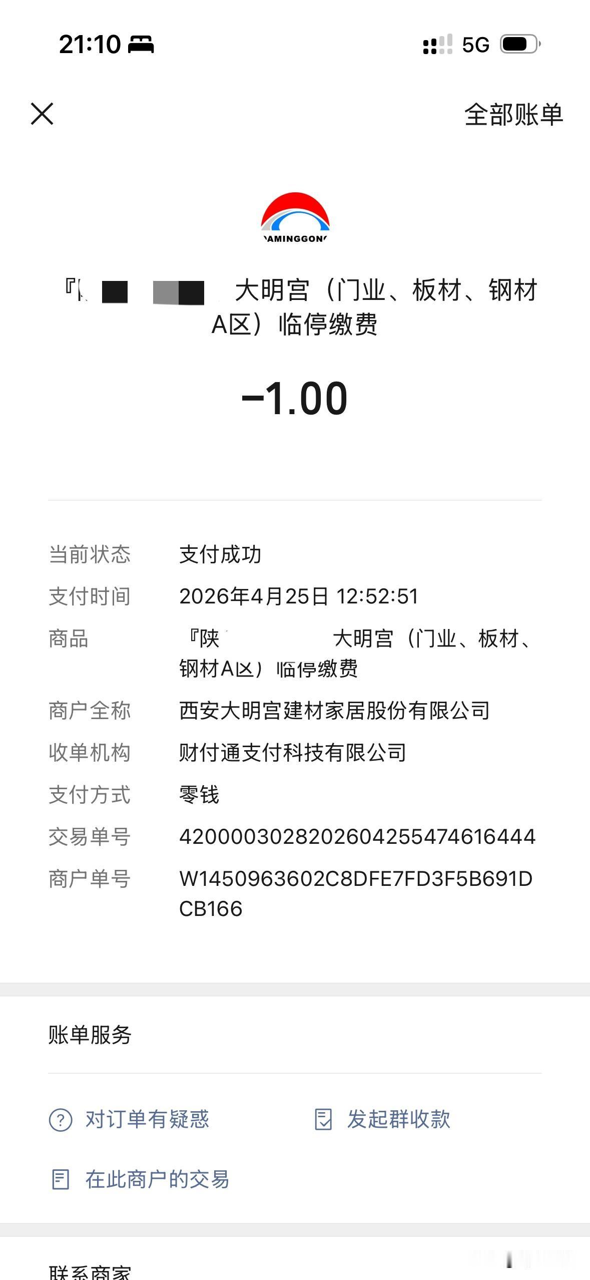 今天在西安马腾空建材市场看建材,停了一小时12分钟,收费六元,早上在北三环大明宫