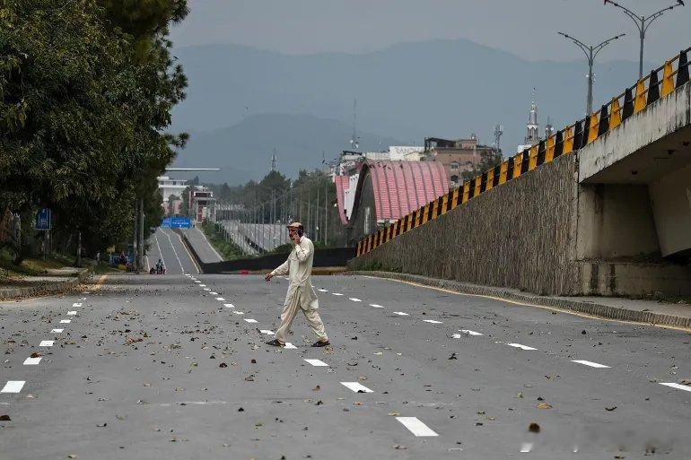 (UTC06:00)照片:伊斯兰堡街道封闭,巴基斯坦为调解伊朗与美国之间的关系