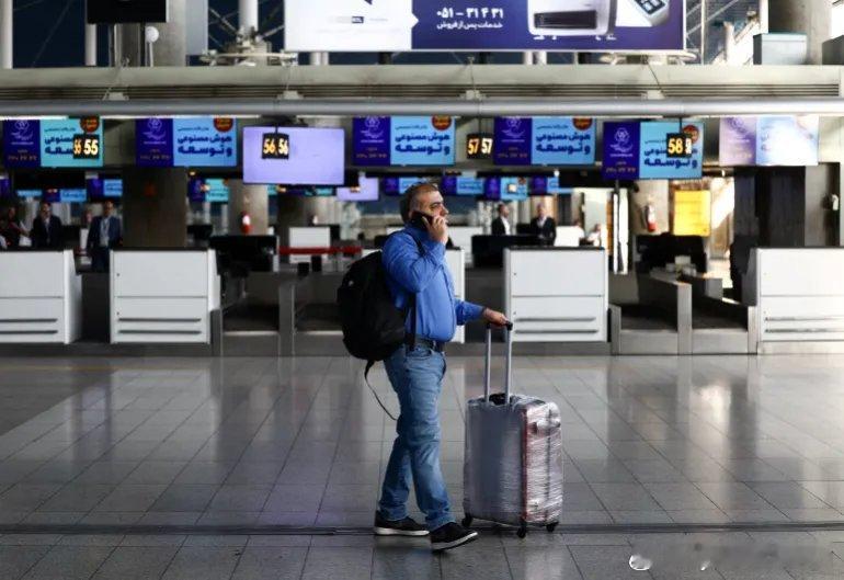 图3 在伊玛目霍梅尼国际机场航班恢复后,准备在德黑兰登机 [Majid Asgaripour/WANA via 路透社]