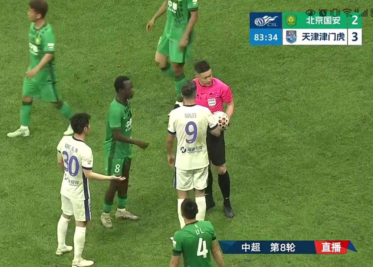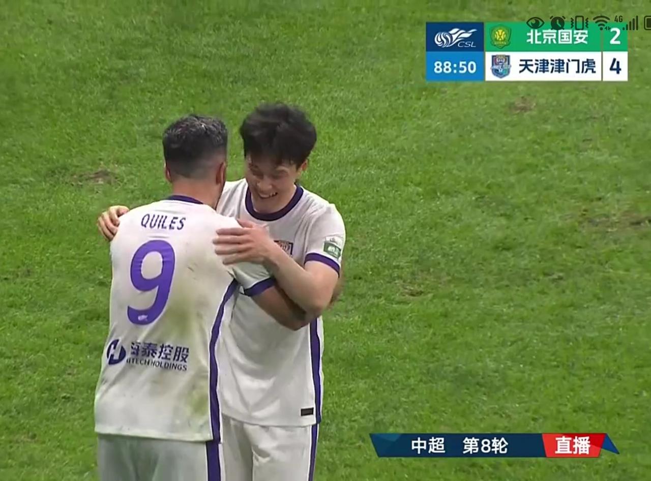 北京时间4月25日,在刚刚结束的中超联赛第8轮的比赛中,北京国安主场迎战天津津门虎,上半场天津津门虎发挥出色,凭借着谢蒂内、哈达斯的进球2-0领先。下半场国安凭借着张玉宁、林良铭的进球扳平比分2-2,此后天津津门虎凭借着基莱斯的梅开二度,最终天津津门虎4-2拿下这场胜利,国安则遭遇新赛季主场3轮不胜。