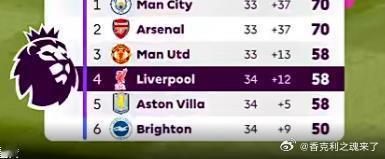 曼城1-0战胜伯恩利,已经赶超阿森纳了,目前积分榜中,利物浦剩余的赛程利物浦剩余