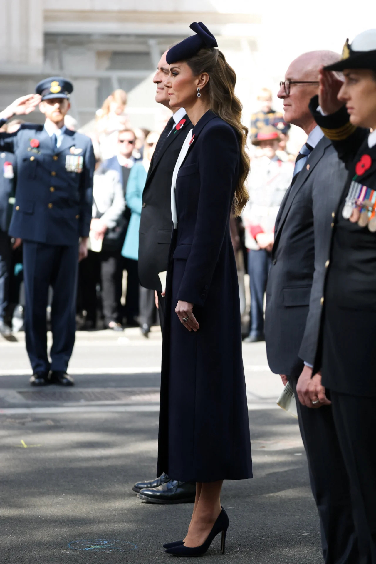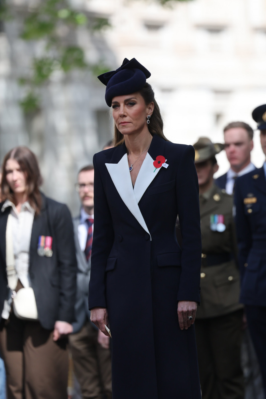 之前预告过的Anzac Day活动,凯特今日代表查尔斯国王出席于伦敦白厅纪念碑前