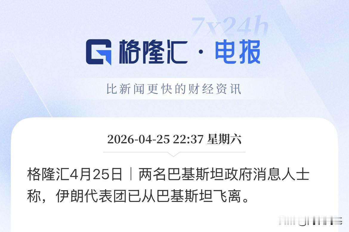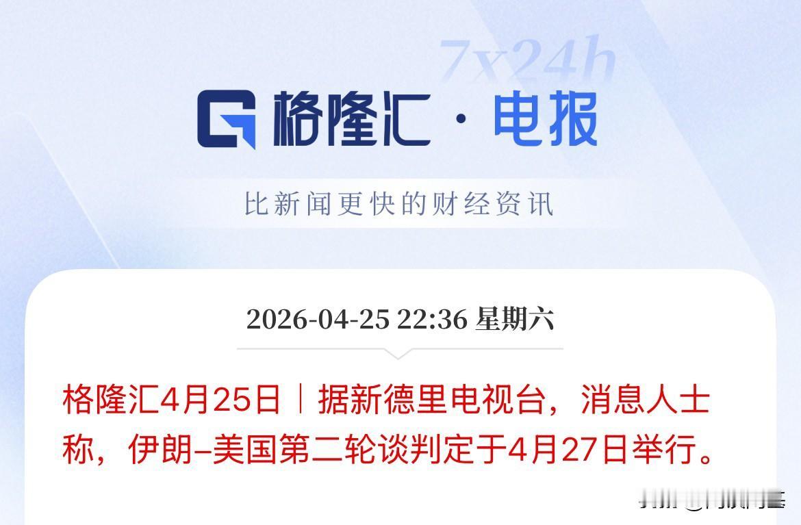 然后刚刚有媒体说,27日也就是下周一,美伊举行第二轮谈判,随后又有知情人士说,伊朗代表团已经离开巴基斯坦,然后又有媒体报道说伊朗外长将于周日重返巴基斯坦,你就说这消息反转的,快不快。