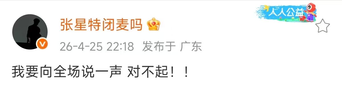 张星特致歉张星特要向全场说一声对不起 张星特致歉:“我要向全场说一声 对不起!” 评论区粉丝纷纷关心,这就是双向奔赴呀