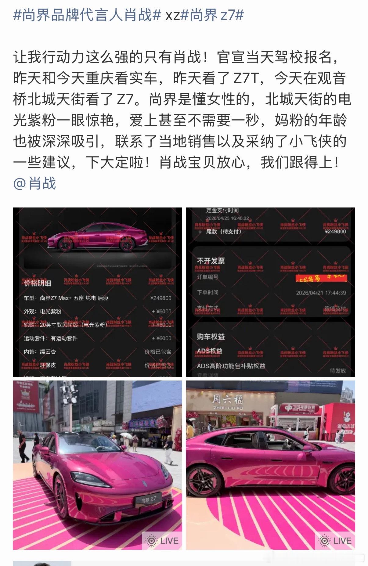 怎么还有人未考驾照就买车的都当妈粉了,这会儿知道报名学车了哈哈哈,也就肖战有这个影响力和号召力话说这颜色真的好大胆明艳尚界品牌代言人肖战