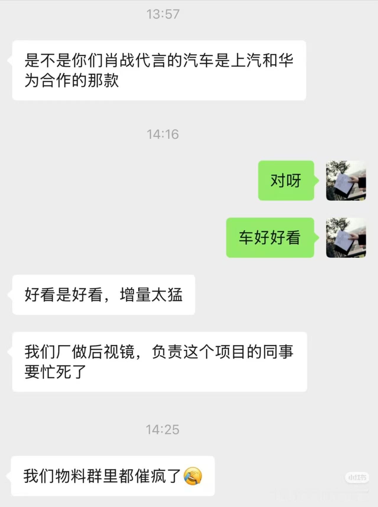 今天有小飞侠和虾姐夫去试驾尚界z7,销售很开心的说自从肖战代言尚界之后,他手里的订单蹭蹭上涨,还说他也要当肖战粉丝[笑哭]