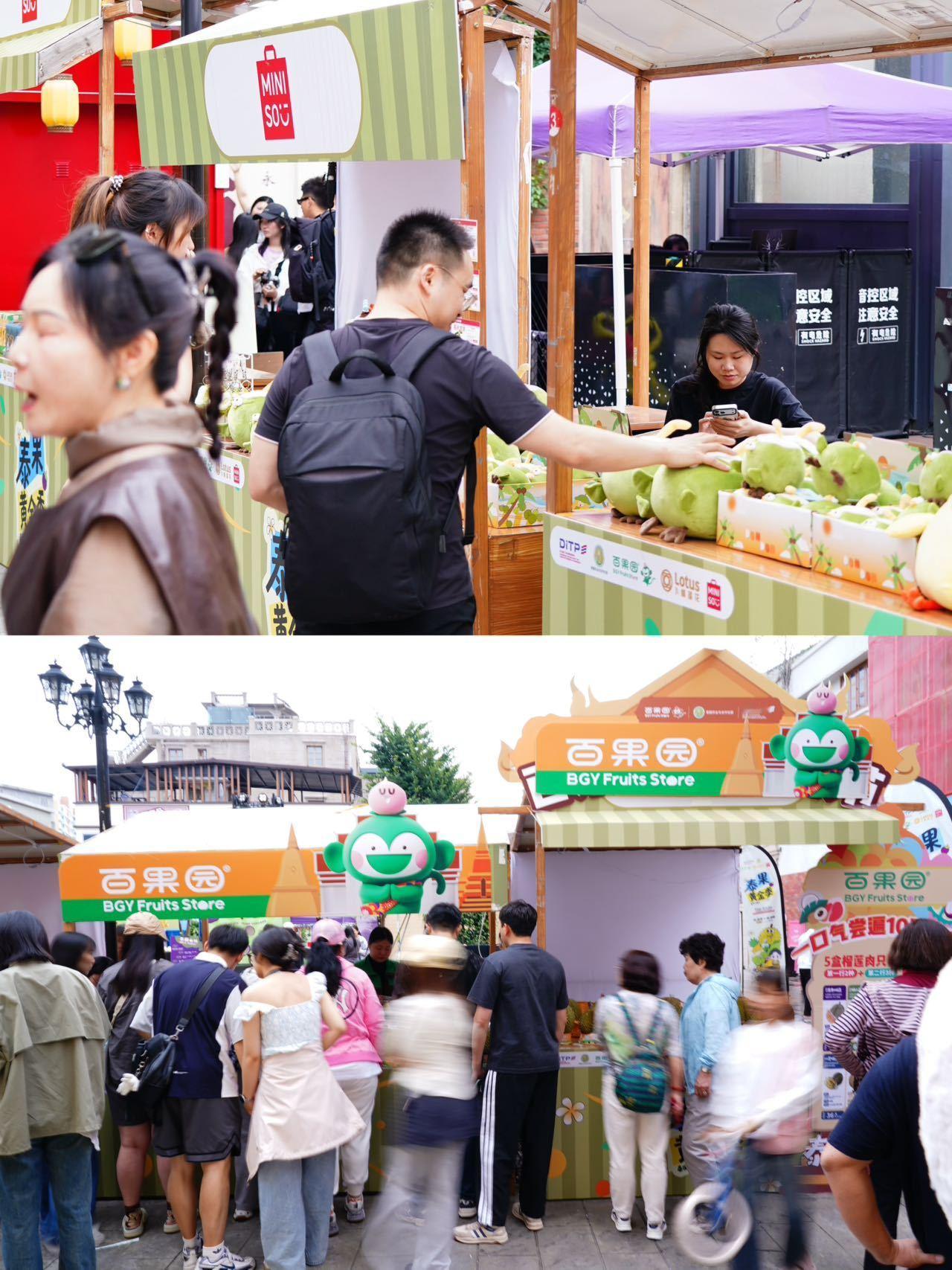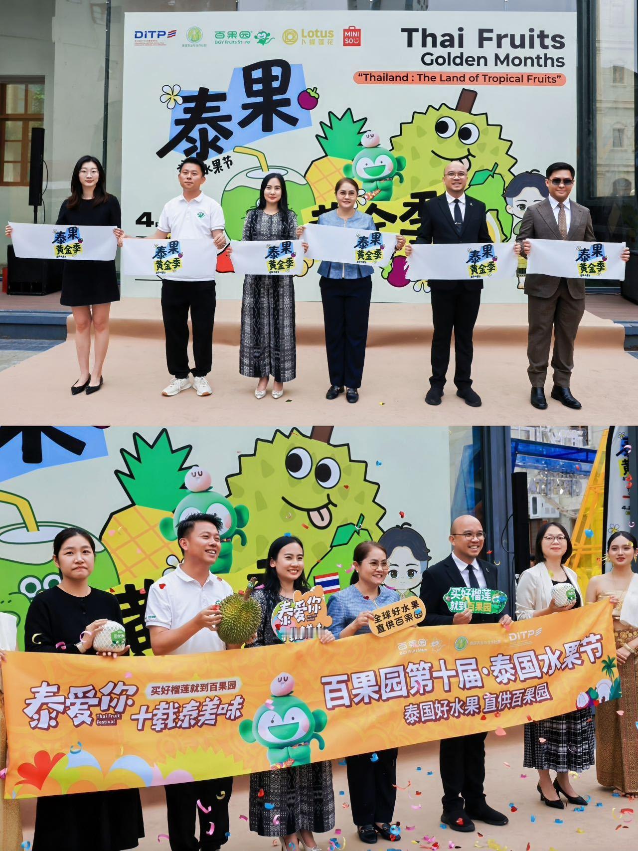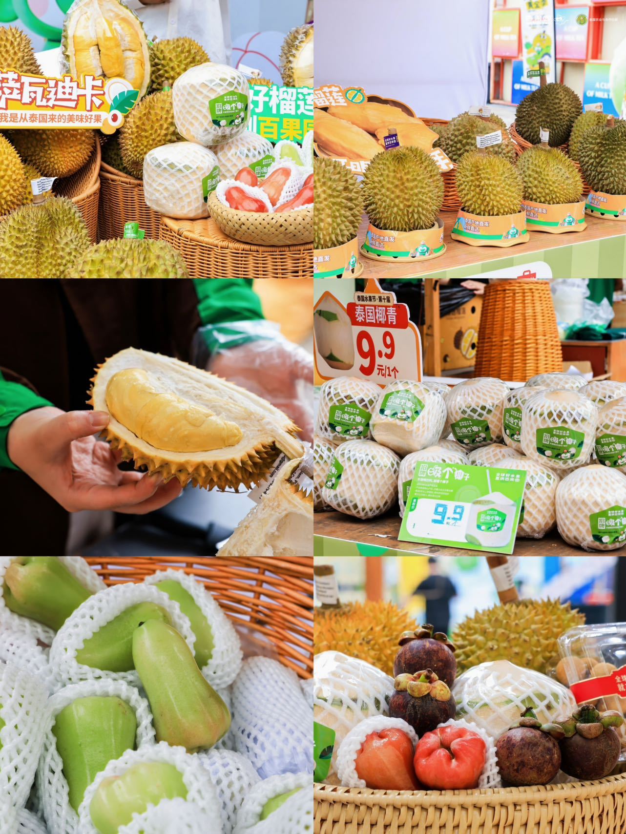 现场氛围感直接拉满泰式舞蹈表演、特色文化展区、水果主题游园互动,打卡完成还能赢精美礼品。重磅亮点抢先看:✅名创优品全新椰香墩墩鸡首发,榴莲墩墩鸡同步上线,软萌必入✅百果园全国四千+门店联动促销,领事空降直播带货正大榴莲✅线上线下同步特惠,囤泰式鲜果超划算