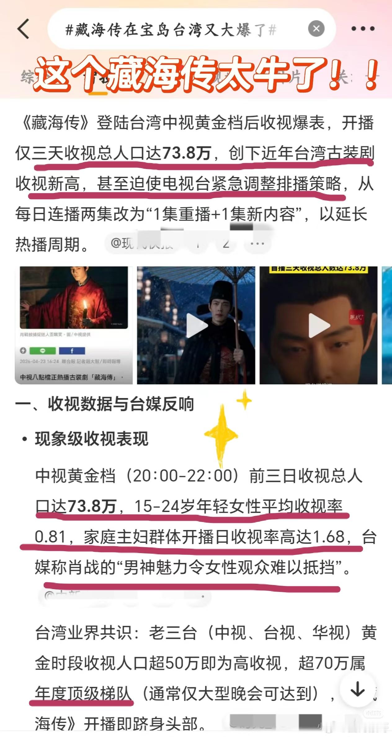 一部剧是不是真大爆还要看有没有长尾,比如肖战的藏海传,除了近期在台湾再掀收视狂潮以外,网上还一直都是讨论剧情的帖子,绝大部分都是切切实实追剧的观众发的,这是真长尾大爆剧!