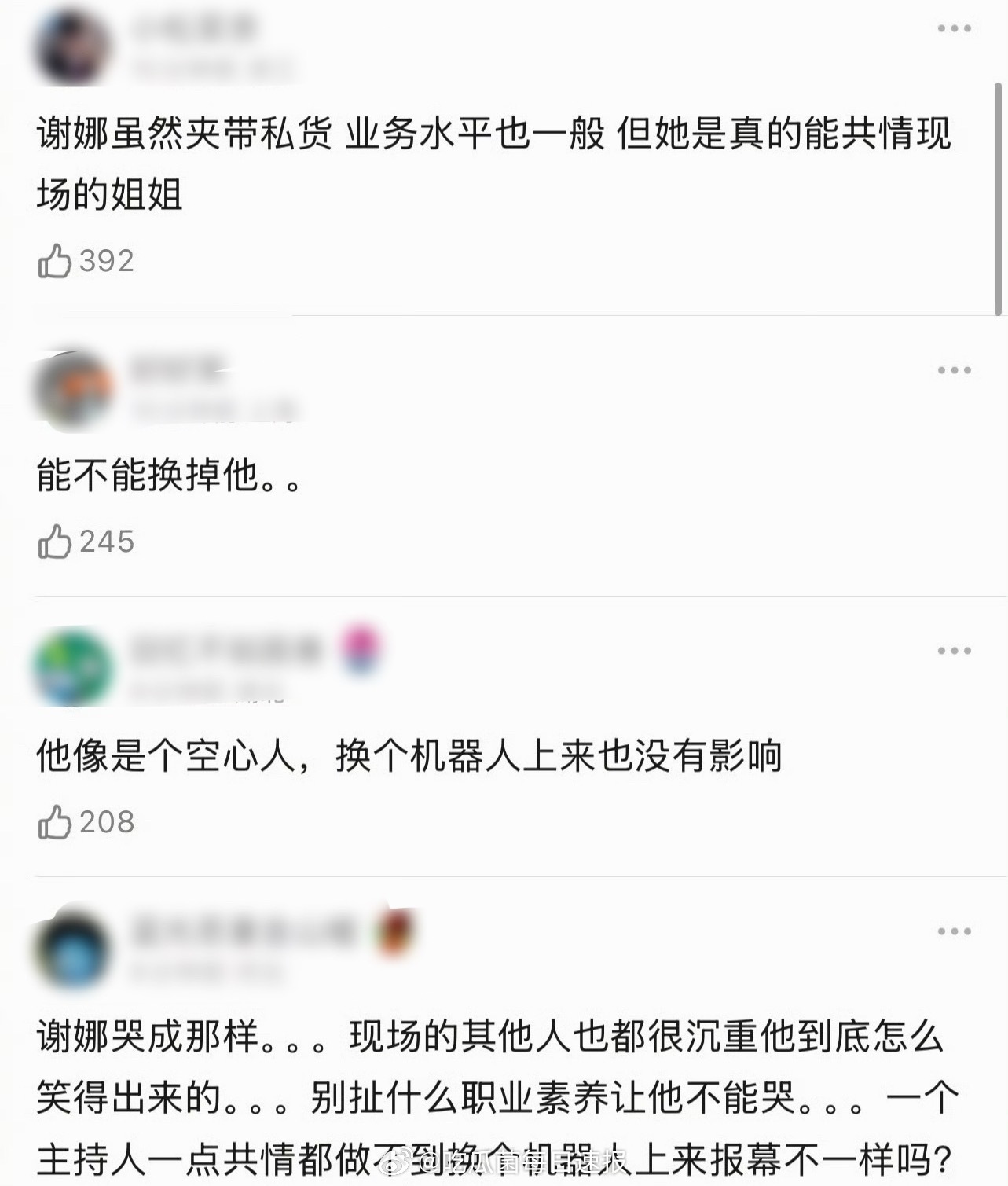 者来女淘汰,主持人谢娜在流泪发言,网友说旁边的齐思钧没有共情,甚至在偷笑……