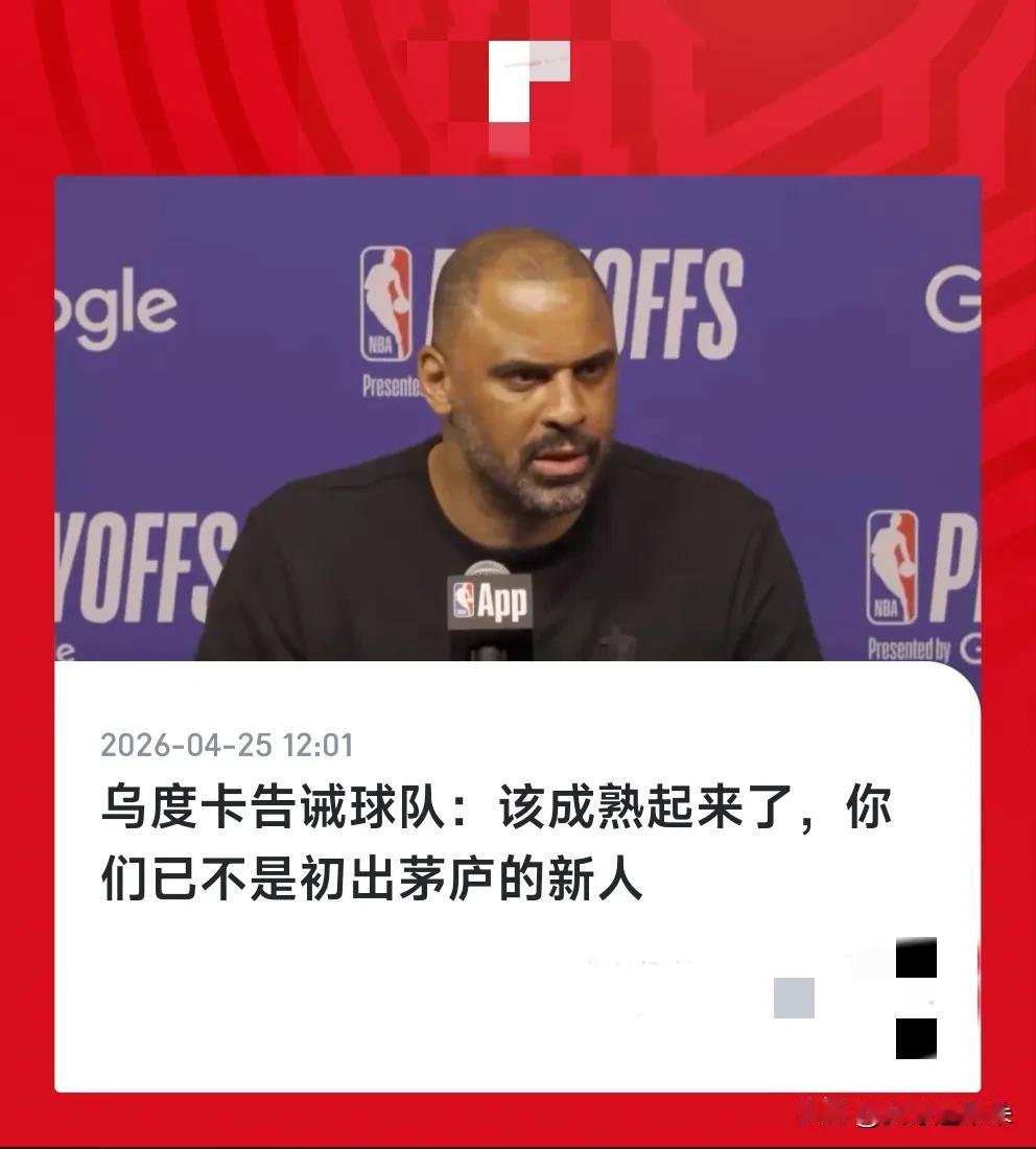 熟悉的味道熟悉的配方,乌杜卡你说你的球员们太年轻了,我觉得是你太年轻了吧,你说你的球员该成熟起来了,我觉得是你该成熟起来了,你只是年龄比你的球员大一点而已,什么时候输了比赛你能知道是自己的问题了那你就成熟了!