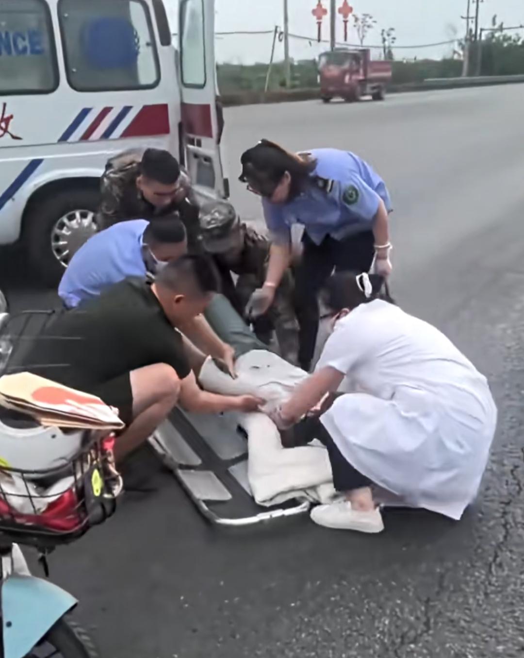 没有专业的救援装备,他们就用双手小心翼翼地查看伤者状况;为了防止伤者挪动造成二次伤害,他们果断蹲守在伤者身旁,维持现场秩序,疏导过往车辆避让;待救护车抵达,他们又协同医护人员,合力将伤者平稳抬上担架,全程配合默契,动作沉稳有力。