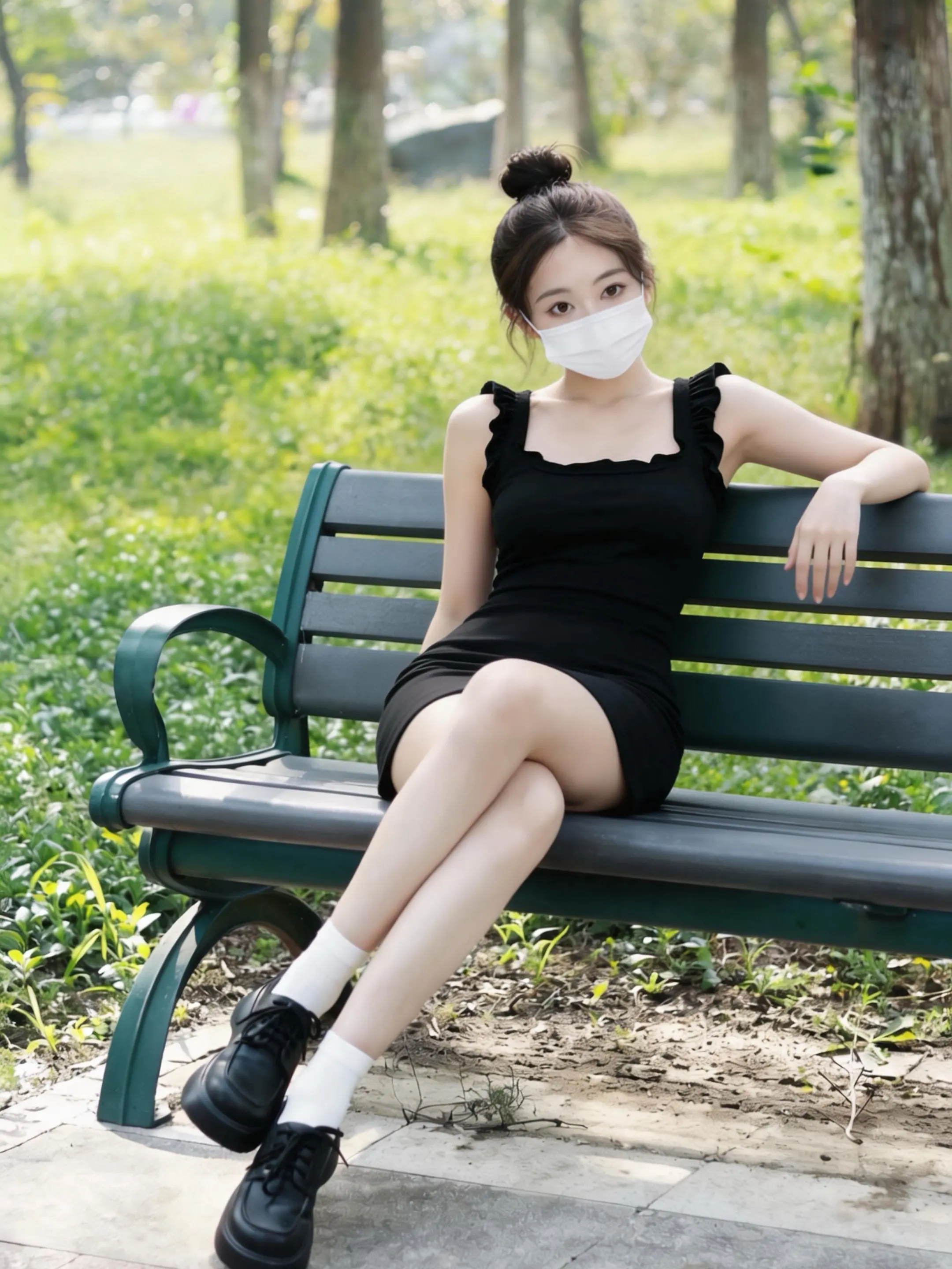 搭配丸子头+小白袜+厚底鞋,在公园随便拍都像韩系女高~