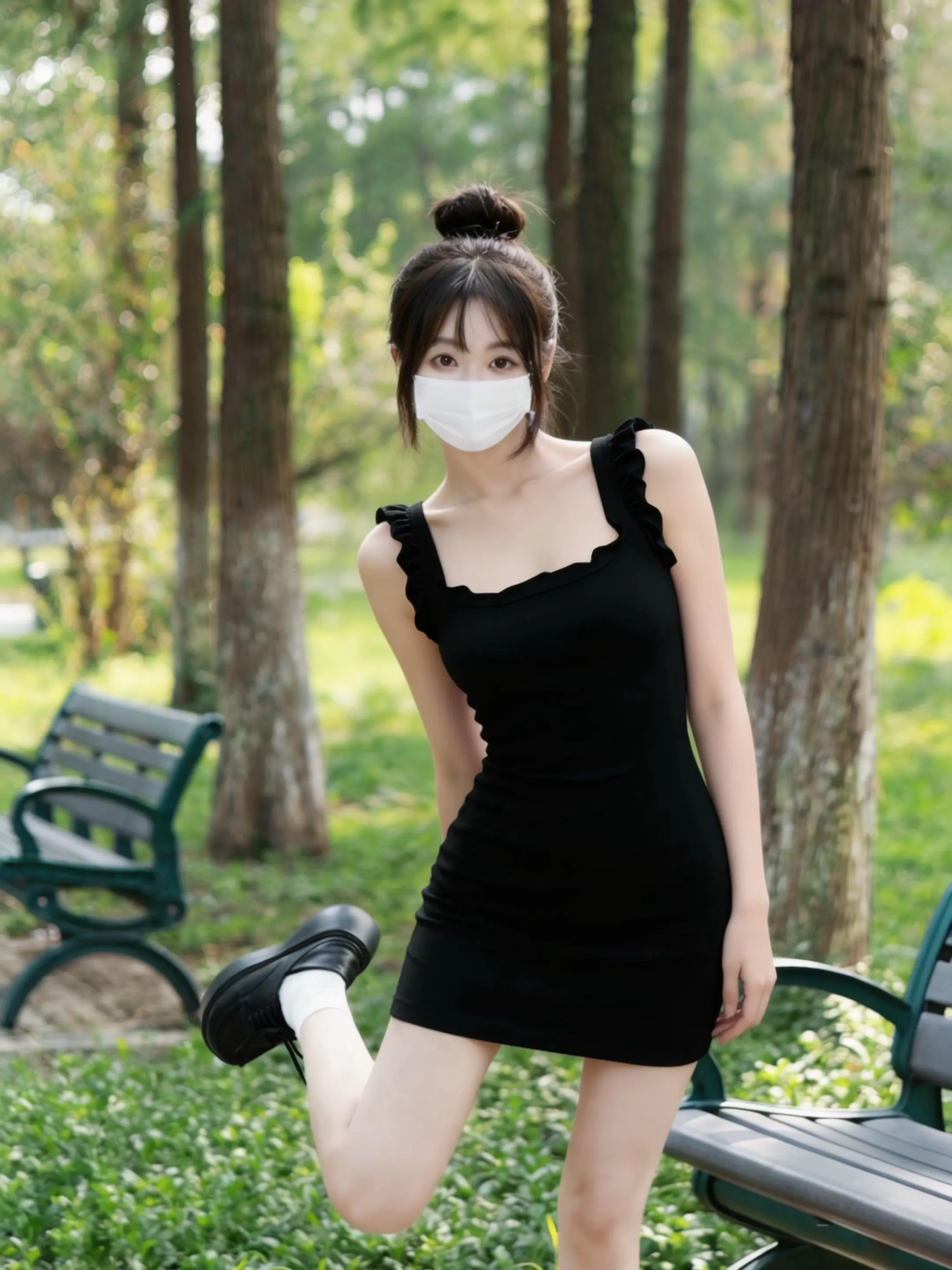公园小黑裙|甜妹氛围感直接焊在身上💚。谁懂啊!这件木耳边小黑裙也太显...