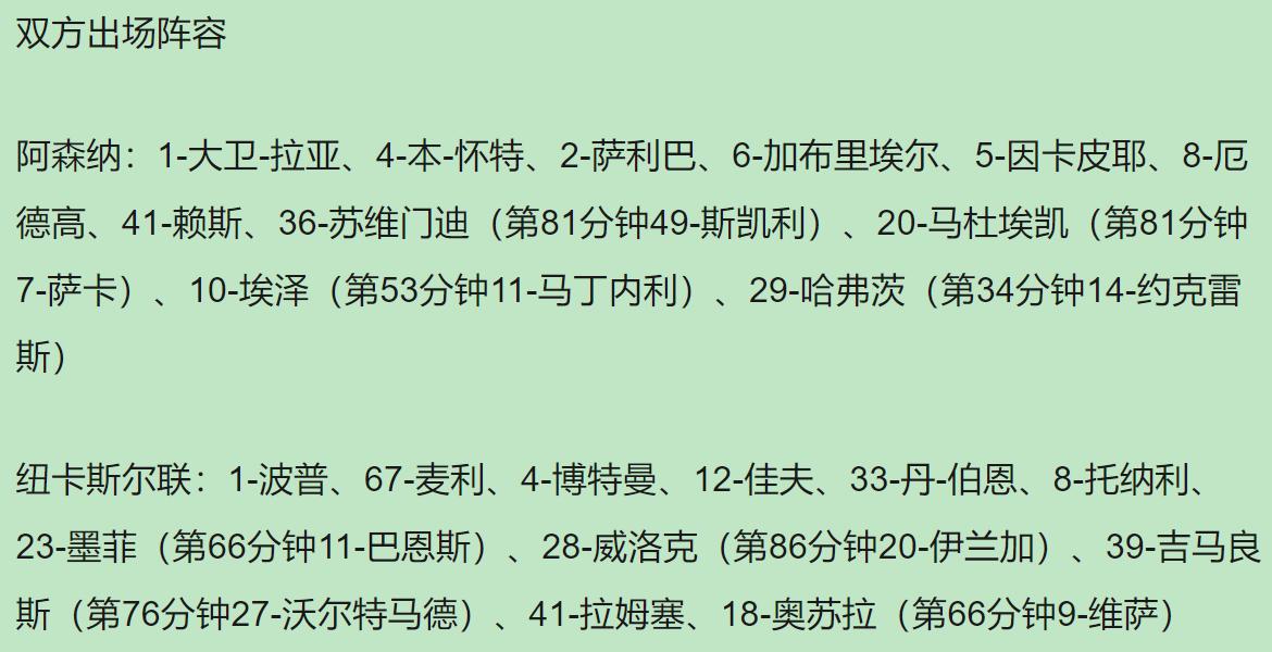 你换个角度想,这就是争冠的成人礼。马丁内利那脚倒钩,萨卡复出不敢发力,全队最后三十分钟踢得像守财奴——抠门、算计、一分一厘都不浪。踢得好看能拿冠军?上赛季我们知道了,不能。丑陋地赢,零封地赢,少两个人也守住榜首,这才是英超争冠的底层逻辑。医学奇迹?不,这是冠军相的另一种写法:苟住,活着,把三分带回家。剩下的,等那帮伤员从马德里爬回来再说。英超-阿森纳1-0纽卡重回榜首