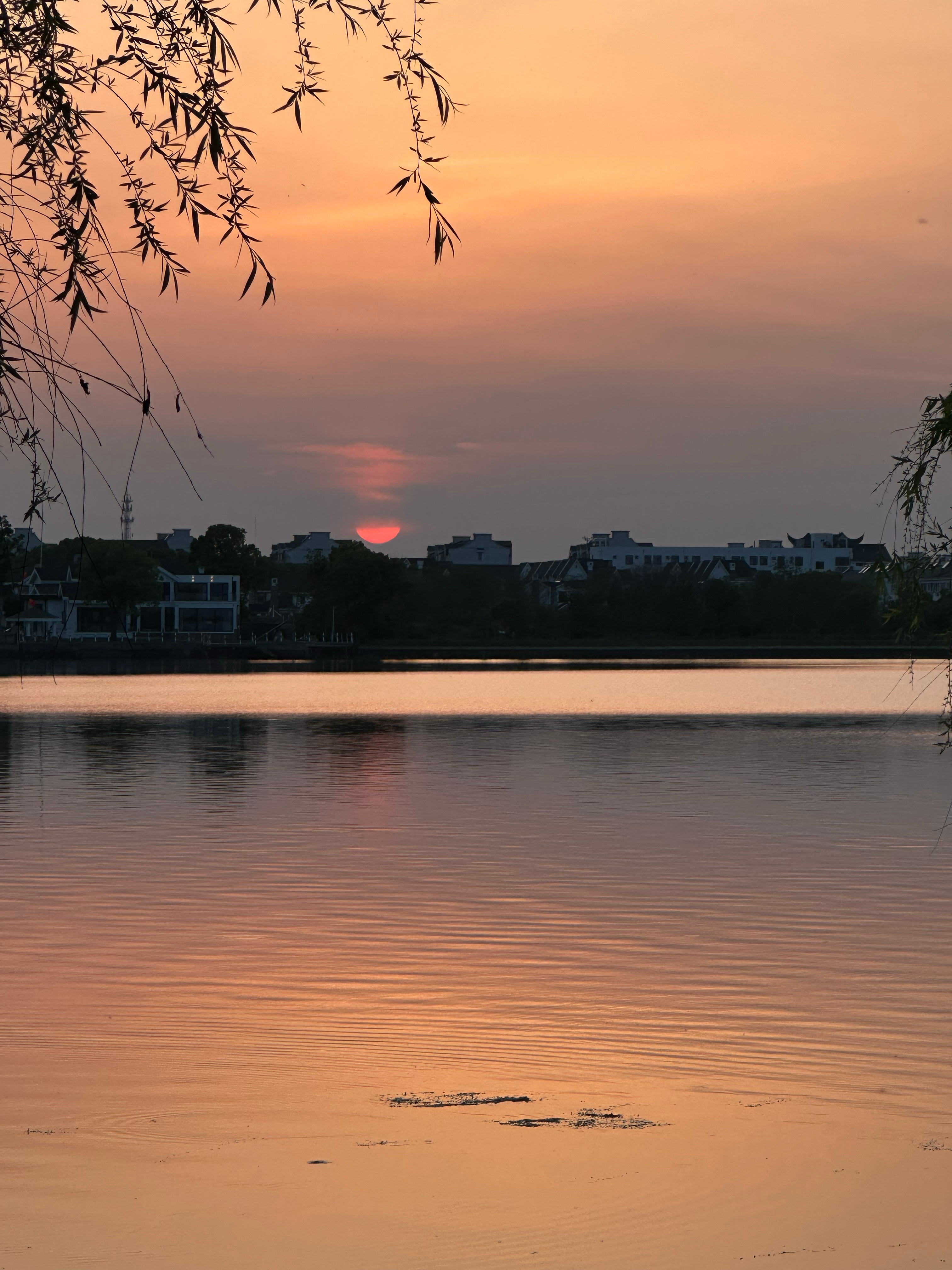 迎着夕阳漫步同里湖岸,看蔷薇在风里舒展花瓣,看夕阳把湖面染成温柔橘色,连路过的风里,都裹着草木与湖水的温柔。