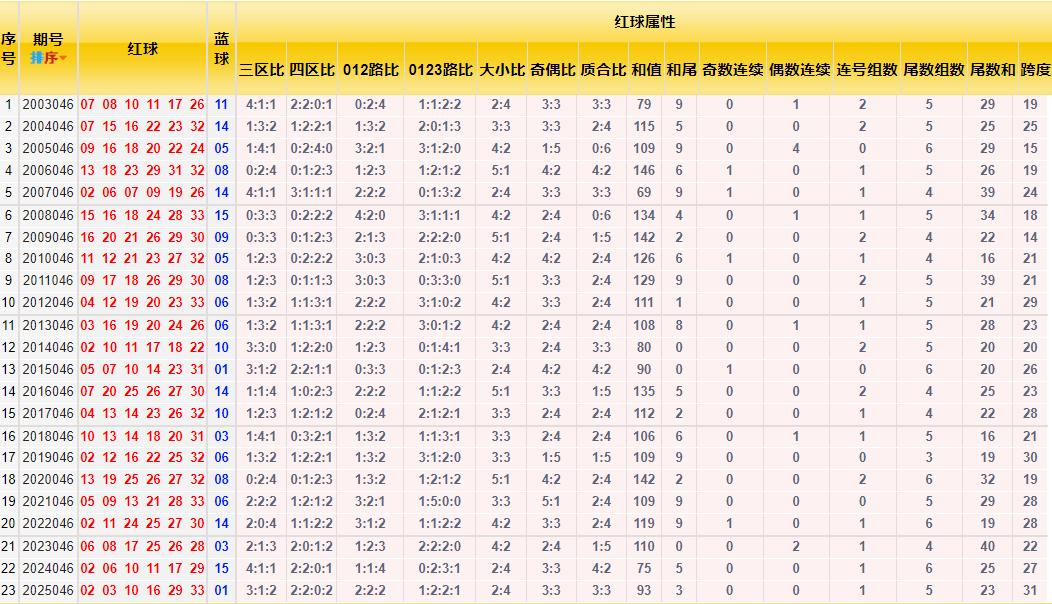 双色球26046期预测: