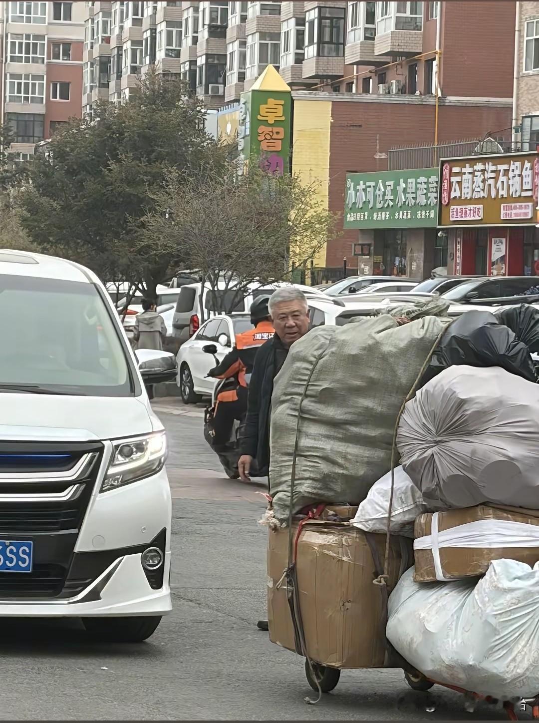 近日,69岁的老演员程煜在家乡哈尔滨驾驶自己的小轿车经过一条街道时,忽然看见一位老人拉着满满的一平板车破烂品,正吃力的往前走,这时他立即将自己的车停靠在路边,赶紧走向老人,帮其在后面推车,一位路过的有心人无意间捕捉到这一感人的瞬间。
