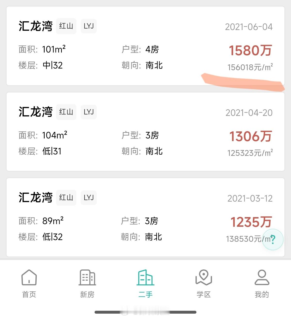龙华红山汇龙湾101平4房930万成交,单价9.1万,低楼层。因为赠送高(套内110平),加上深高北学区,所以这里能卖这个价。(高峰期这个户型卖到了1580万) 深圳