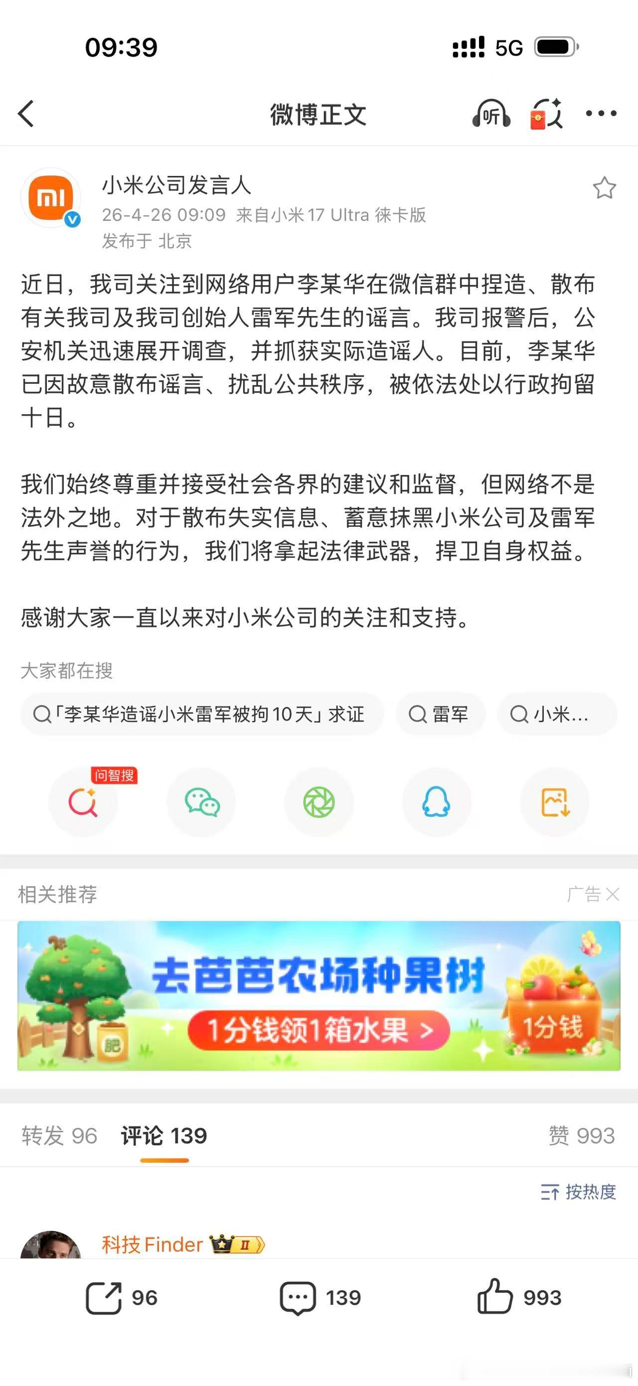 这么短的时间内就给拘留了,小米法务部是真铁腕、真干活啊珊瑚如果当年惹得不是特斯拉,是小米、华为我估计判个3次都绰绰有余