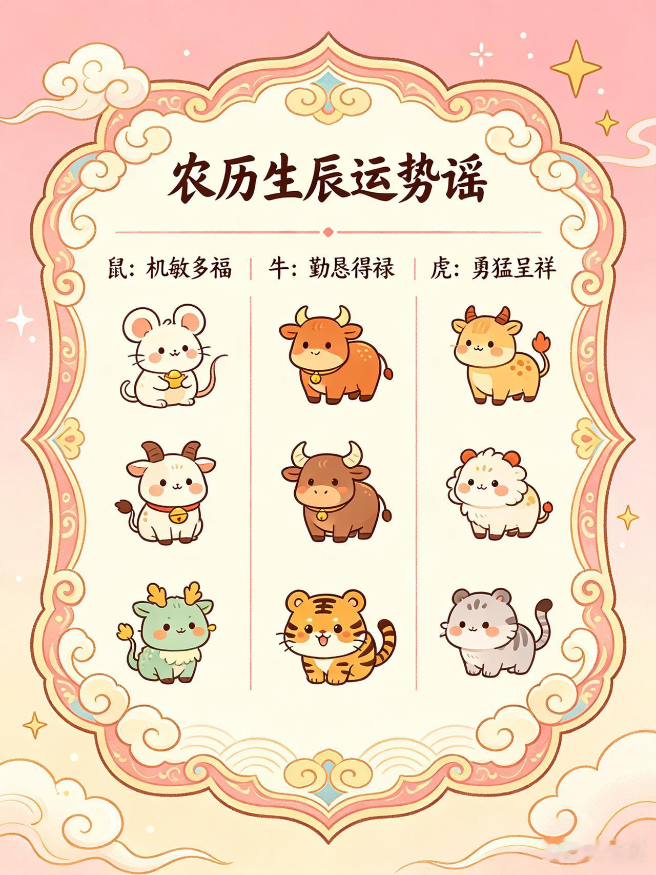 农历生辰运势谣 1、福气随身正月生 2、踏实肯干二月生 3、聪慧灵秀三月生
