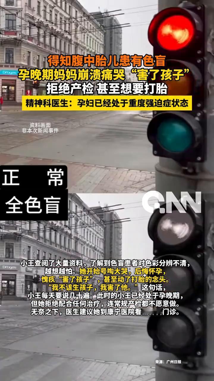 一名孕妇在孕晚期检查发现自己未出生的孩子有色盲,其他发育都很正常,医生说不会太影响孩子的正常生活,但孕妇查阅大量资料之后,觉得是自己对不起孩子,陷入了焦虑之中,饭也不吃,甚至一度不想要这个孩子。