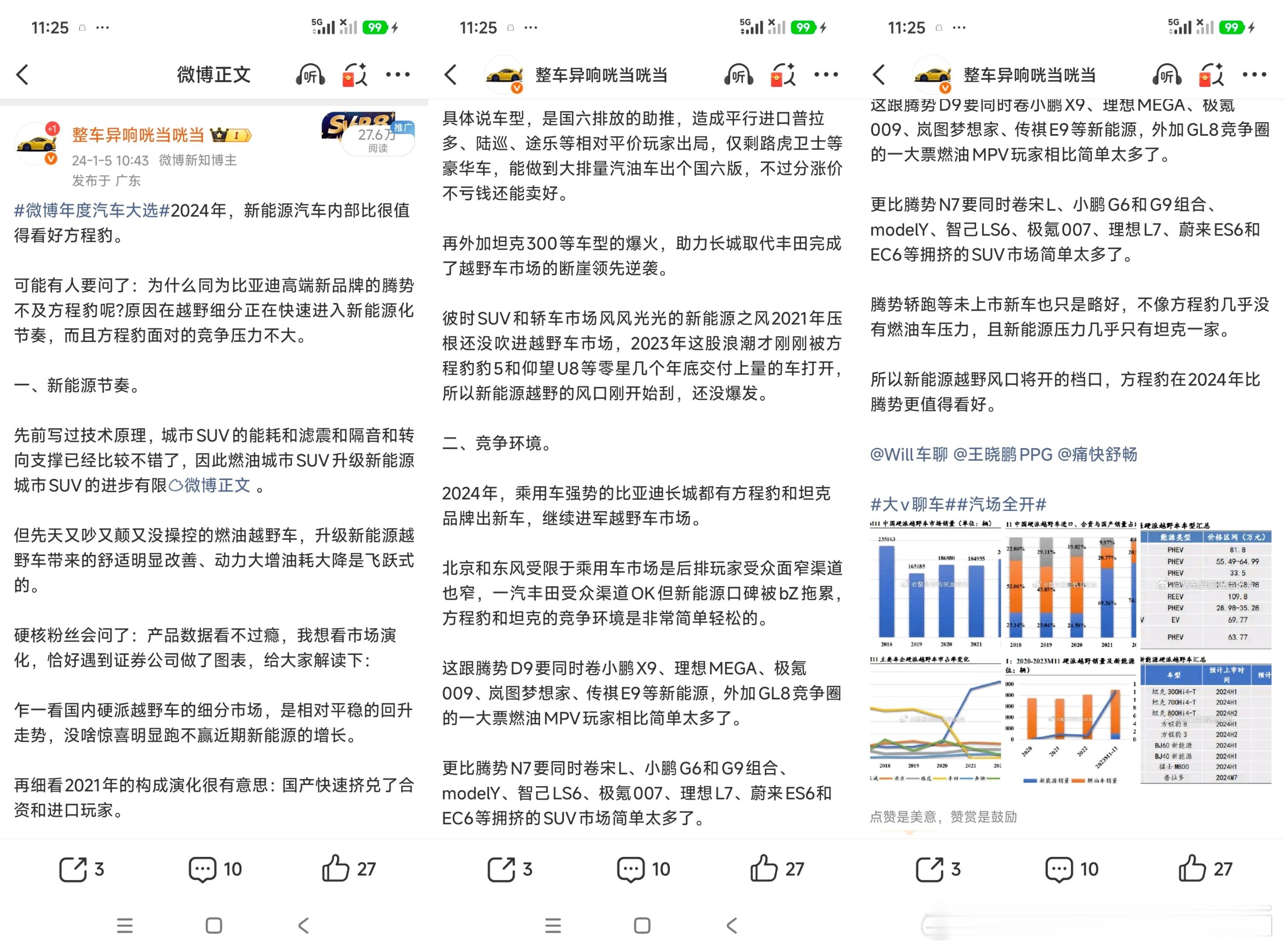 第三,方程豹还有一个大SUV,这车一看就是看腾势N9和N8L打理想问界蔚来极氪等对手的战绩不佳,跑来抓紧跟上市场趋势的,对腾势的兄弟车自然也少不了替代影响。