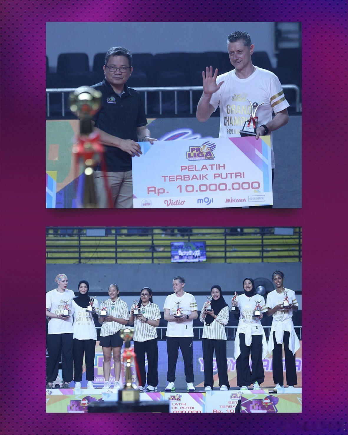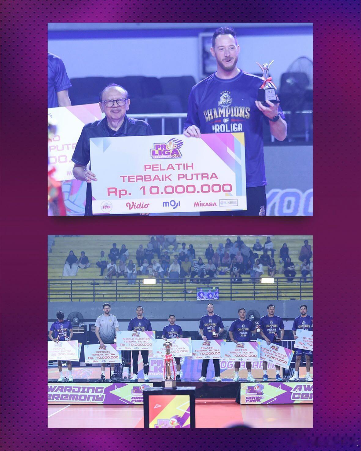 国际排坛动态 昨晚的印尼联赛颁奖礼,沃隆科娃和萨拉斯囊括了女排最佳主攻,桑德尔和萨达特拿到男排的最佳主攻和最佳接应,女排最佳教练是土耳其的卡斯勒奥卢,男排最佳教练是美国的李,这位帅哥转型还算挺成功~