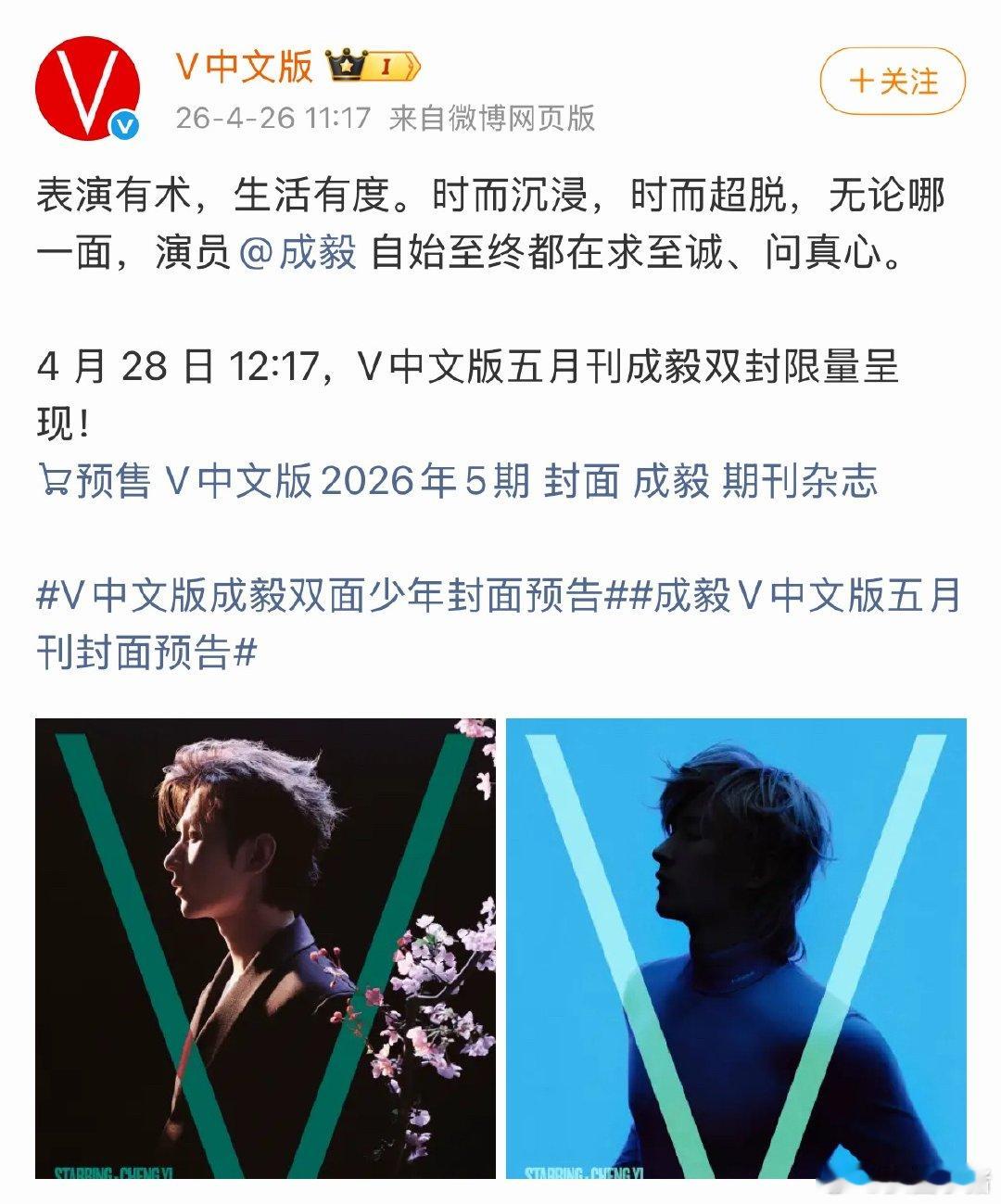 成毅V中文版五月刊封面预告~期待成毅的超绝时尚表现力成毅V中文版五月刊封面预告