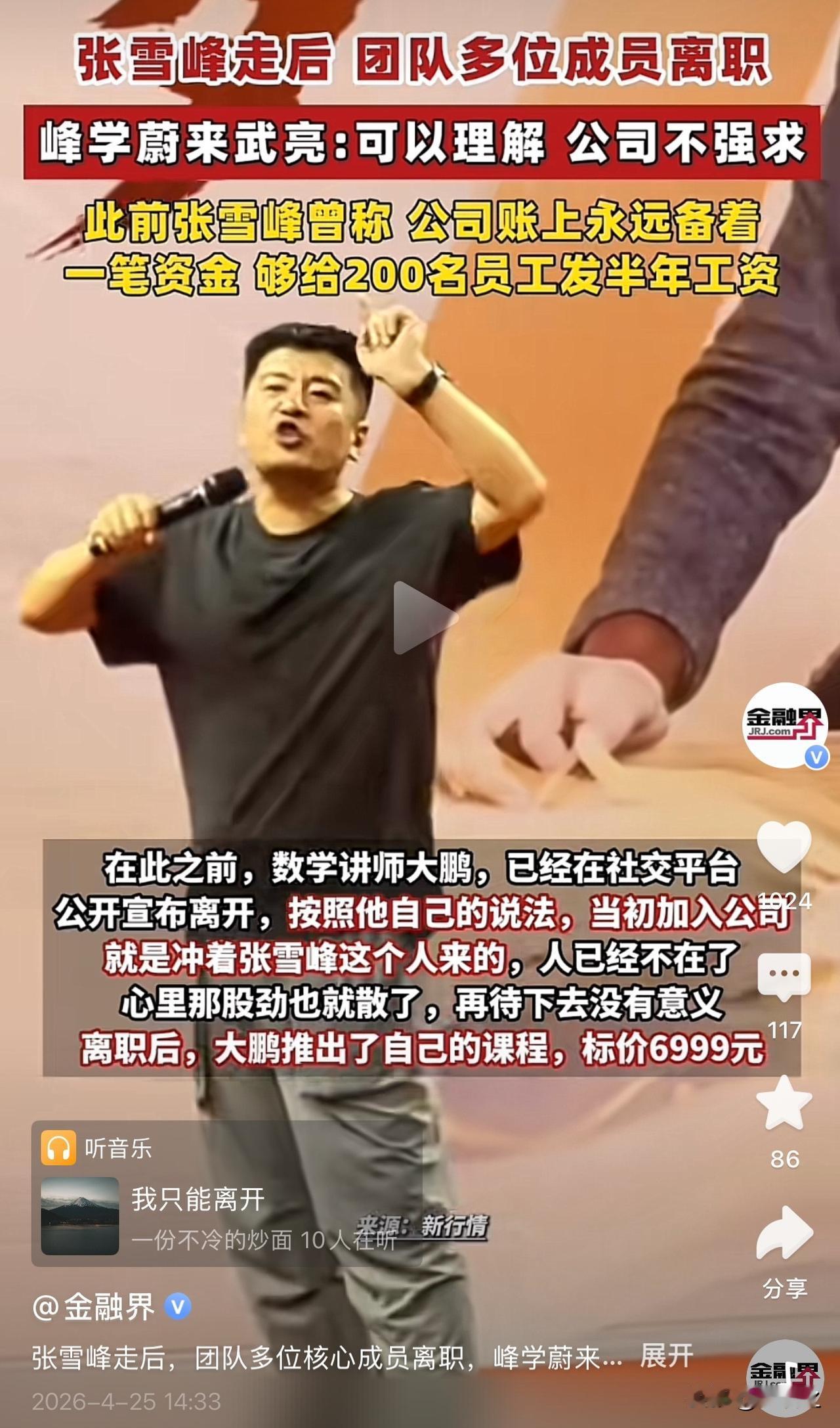 张雪峰没走,有些人为了个人利益最大化也会离开。张雪峰在的时候他们没走,是因为张雪峰能够提供给他们更多的想象空间,比如企业上市带来的利益,可能比他出去赚的更多。