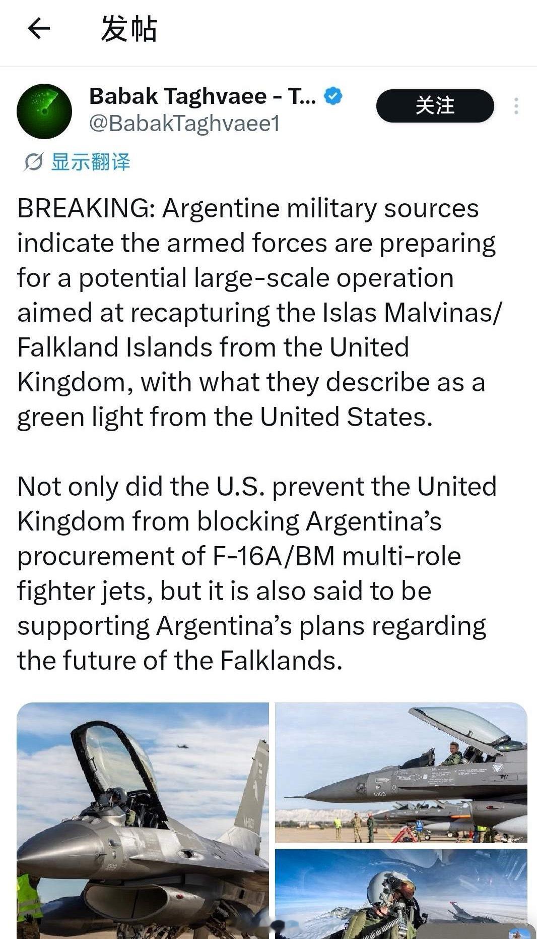 美国不仅阻止了英国阻止阿根廷采购 F-16A/BM 多用途战斗机的行为,而且据说还支持阿根廷有关福克兰群岛未来的计划。