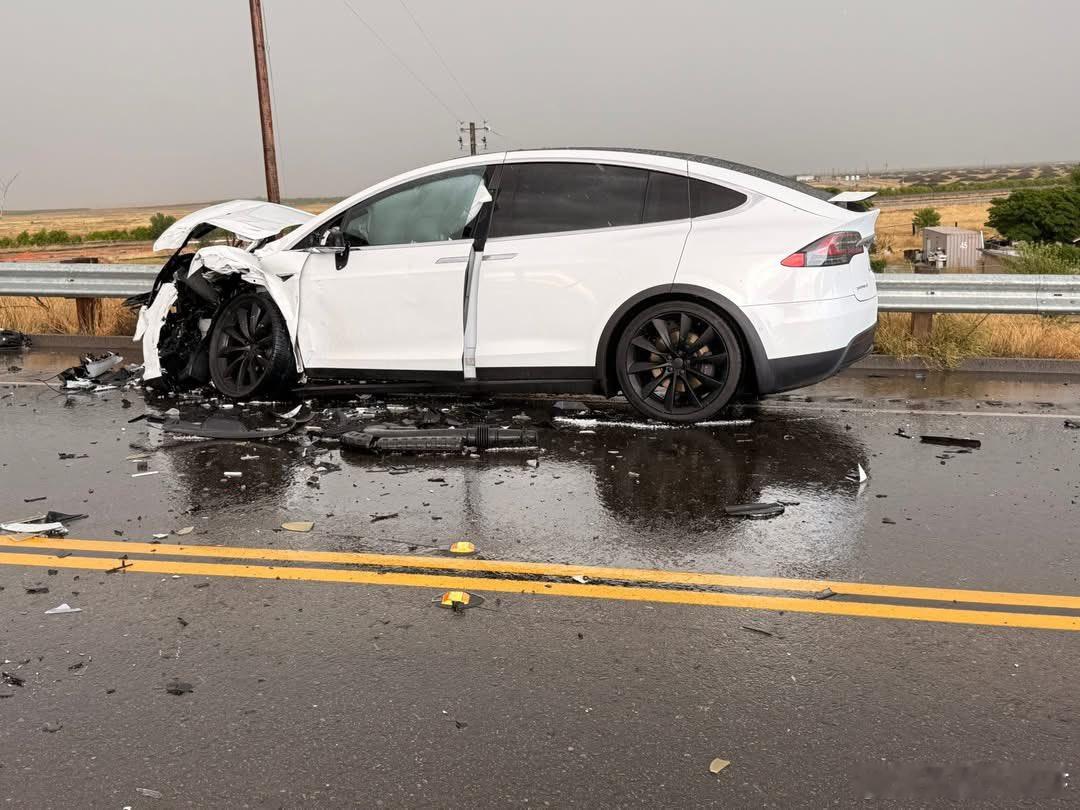 酒驾司机跟modelx车主亲密接触后的狼藉现场好像还是个女生特斯拉被酒驾司机撞击