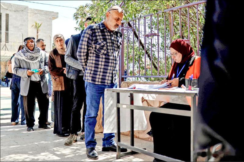 图1:民众在艾尔伯拉一处投票所外排队。 (法新社)图2:根据法新社指出,这场地方选举上午仅见零星选民,约旦河西岸多处投票所甚至一度空无一人,到下午人数才缓慢攀升。图为一名妇女在比尔泽特的投票所投票。 (法新社)图3:巴勒斯坦民众廿五日聚集在加沙走廊唯一举办地方选举的城市迪尔巴拉的一处投票所外,排队等待投票。 (欧新社)本次选举中,主导参选的是巴勒斯坦民族解放运动(法塔赫)阵营及部分独立候选人,同时也有来自巴勒斯坦人民解放阵线(PFLP)等小派别的候选人参与。