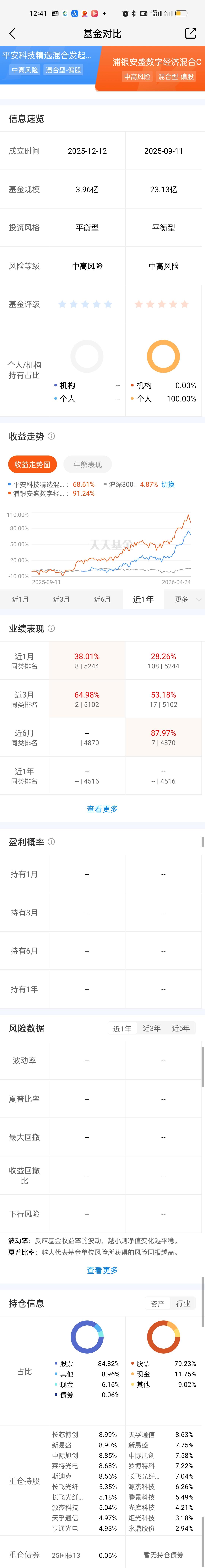 同样的CPO我们又找到了平安科技精选,前海开源沪港深强乐享生活以及浦银安盛数字经济。其中平安是去年双12才成立的新秀,乐享生活是老面孔,这次是厚积薄发。浦银安盛数字经济是一匹黑马。今年一出场也是惊艳无比。都给了传统四豪强(永赢,中航,德邦,信澳)致命一击。