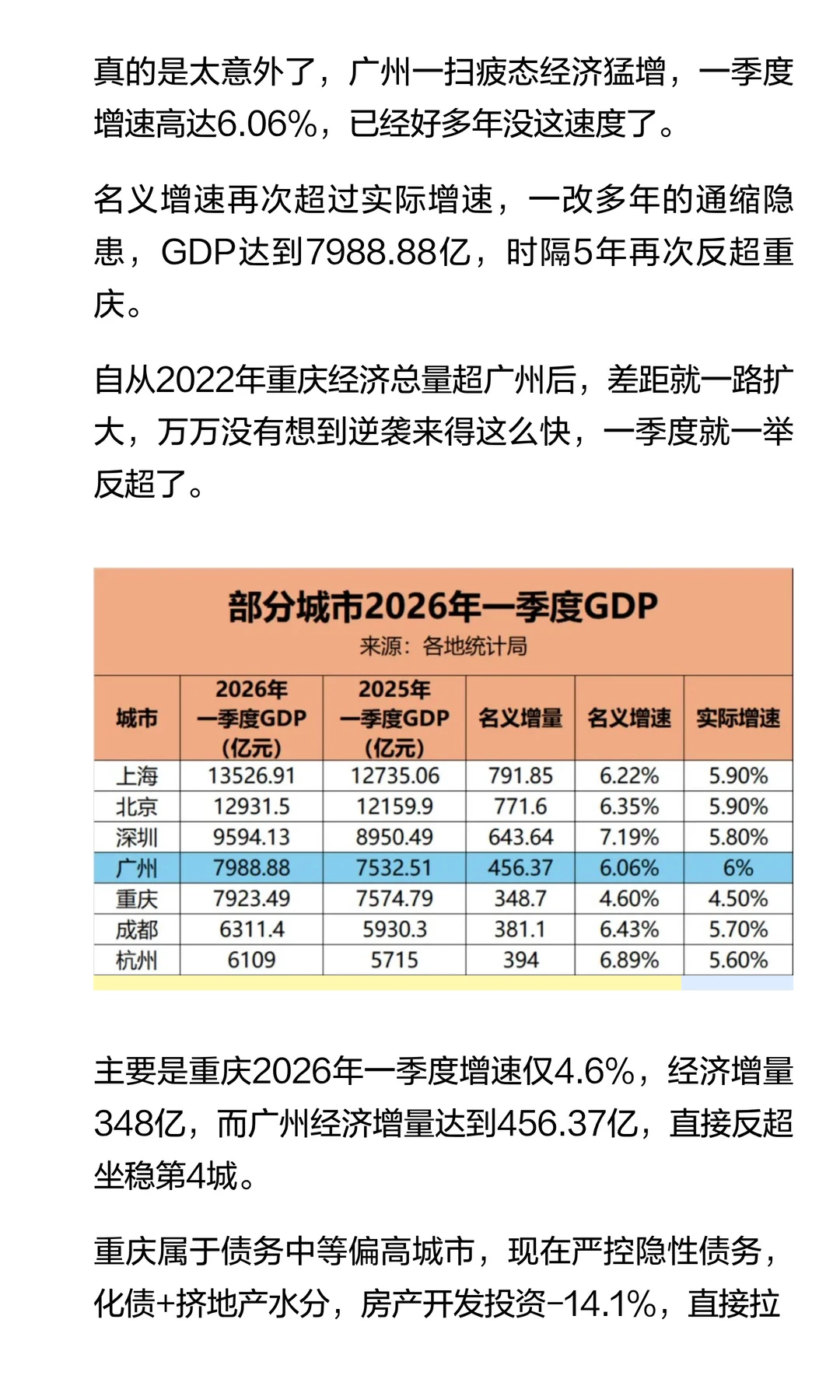 广州2026年GDP爆发,时隔5年再次反超重庆