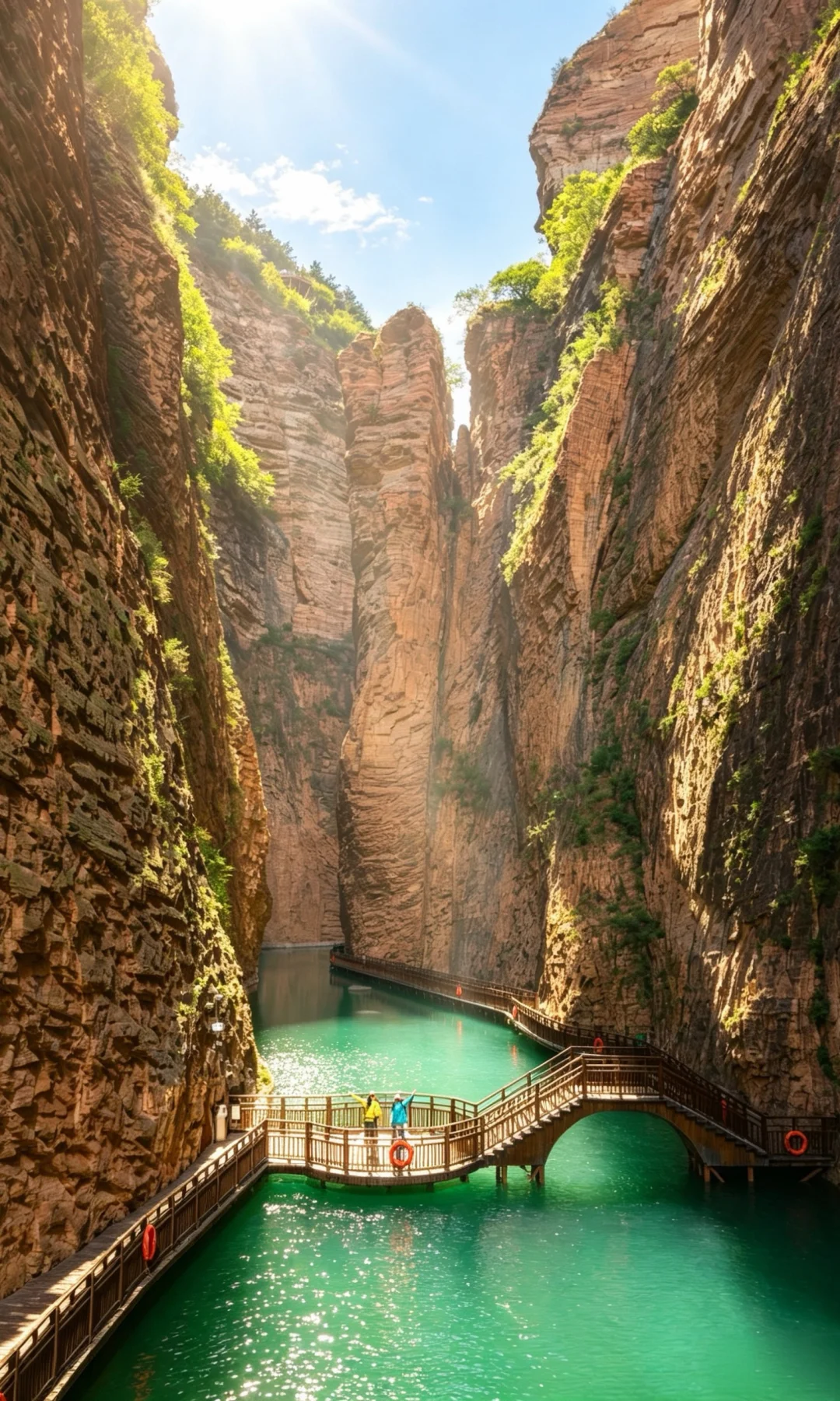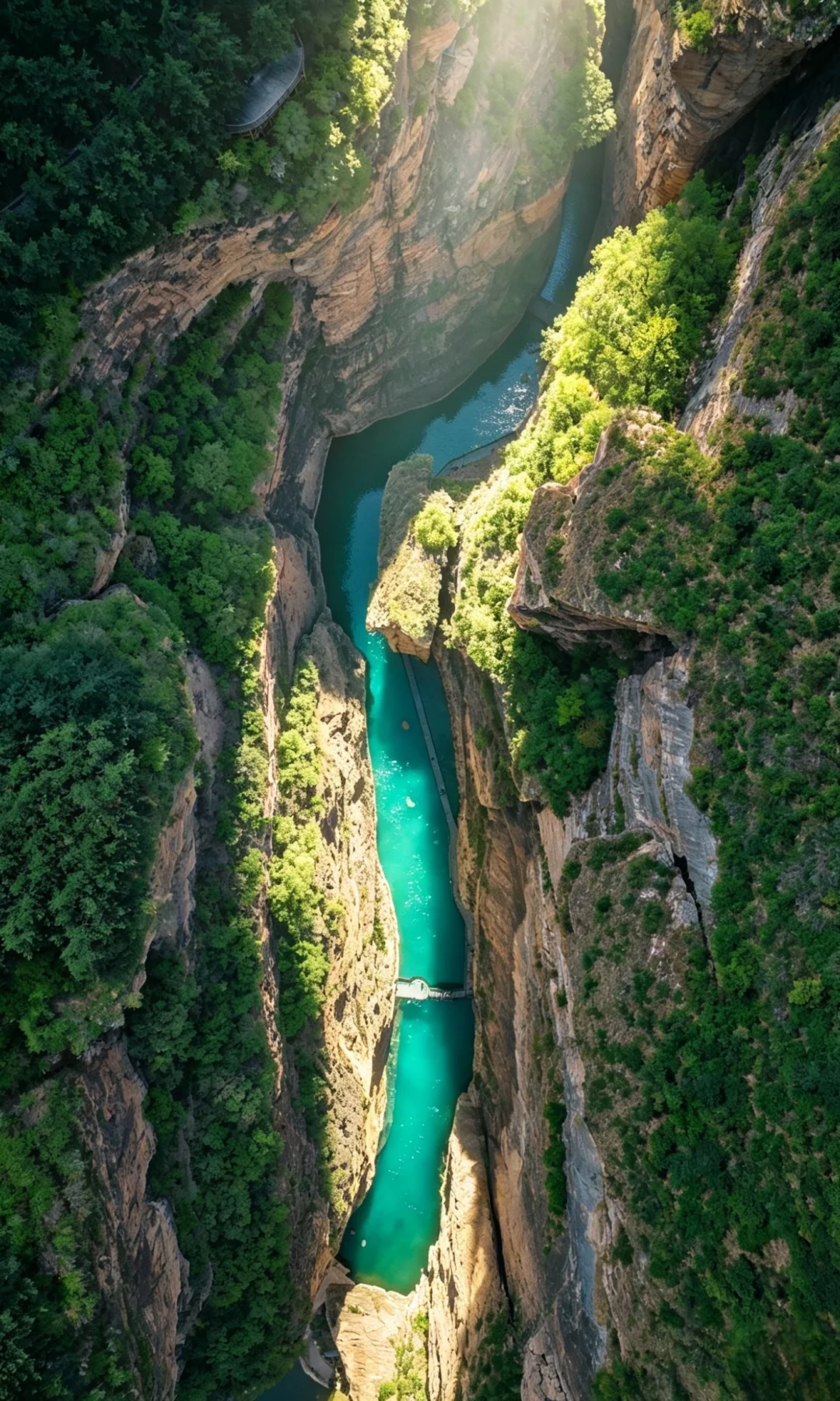 ✔️想要出片峡谷中午阳光洒向峡谷水面的时候是好看的碧绿色