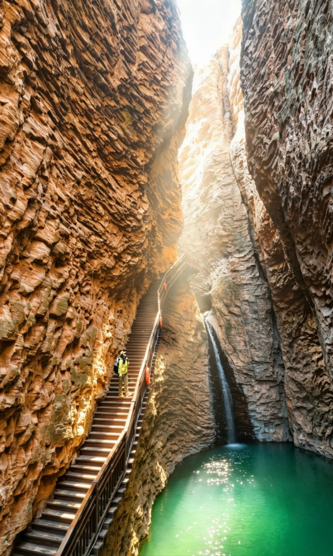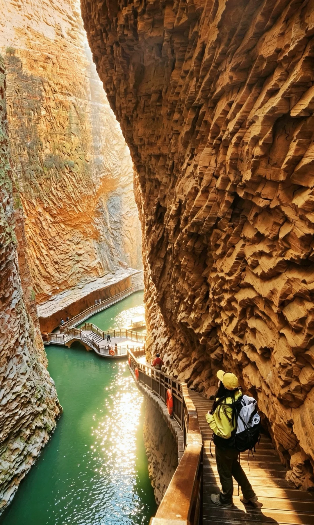 S型峡谷横亘群山之间,百米丹崖夹道而立,抬头只剩一线天光,窄处仅容一人通过