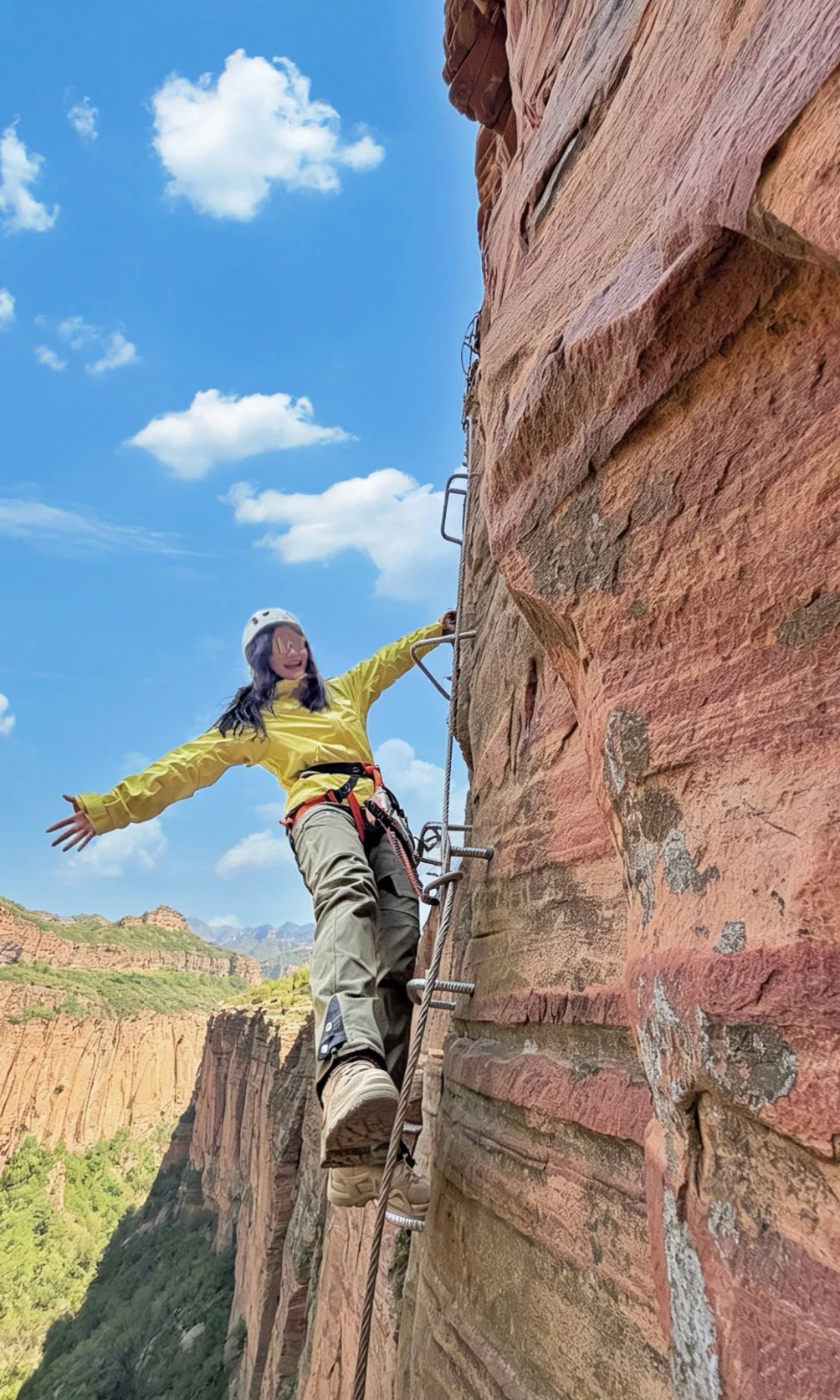 沉浸式飞拉达,紧贴百米崖壁,手攥铁索腿找支点,呼吸声都被放到大