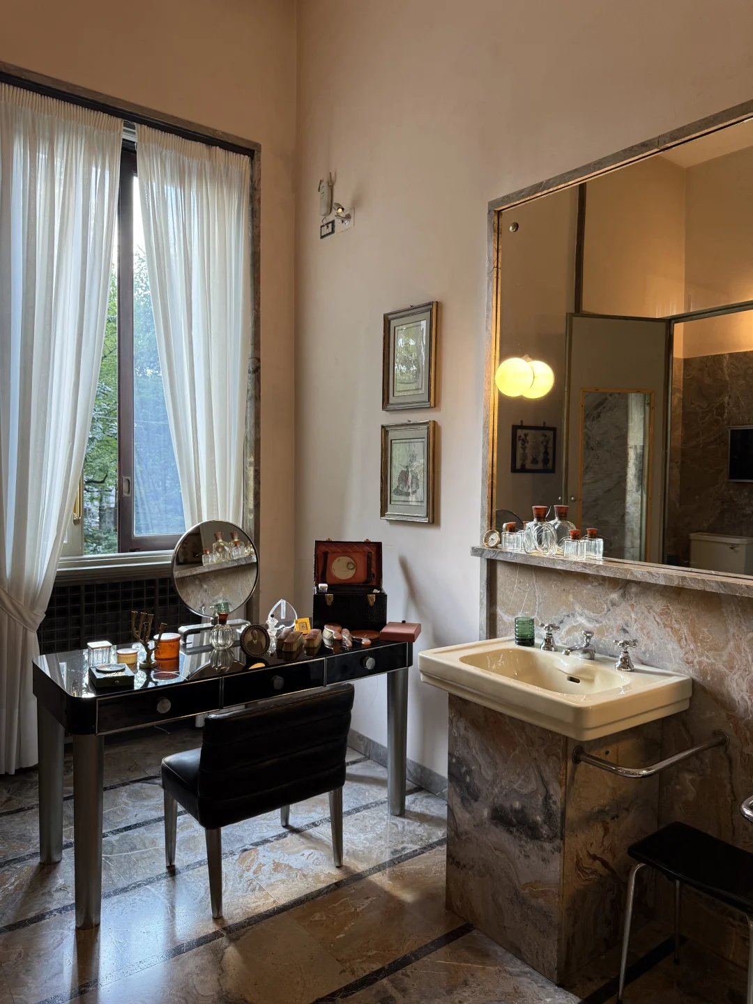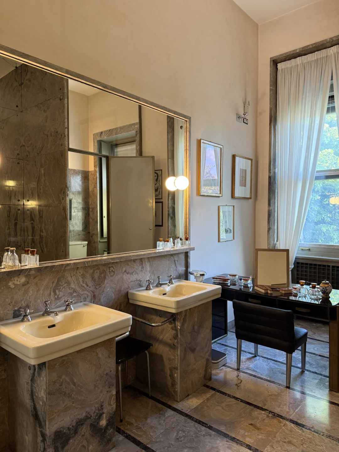 米兰市中心内奇姐妹的豪宅,印象中一共有6个浴室,数不清的房间、客厅,像做了一场梦,在1930年树影斑驳的午后。