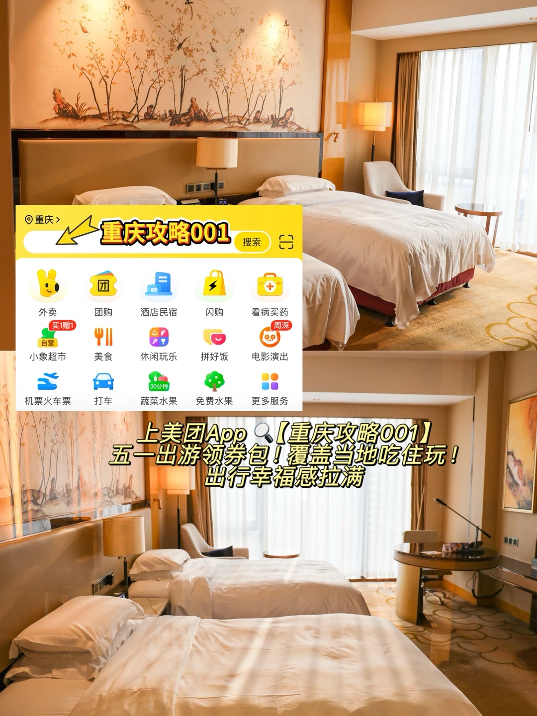 ✔️美团酒旅真的超懂出行党,想来重庆度假直接上美团App🔍 【重庆攻略001】, 可领专属188元出游券包,轻松锁定舒适住处,让整趟重庆之旅惬意又省心,省下一大笔,五一出行幸福感直接拉满‼️