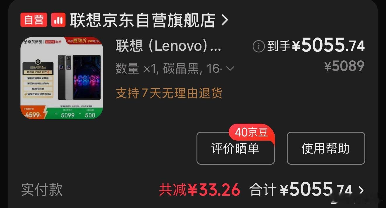 大家都调侃拼多多,但是拼多多百亿补贴真的太香了……联想Y700 第五代 16GB