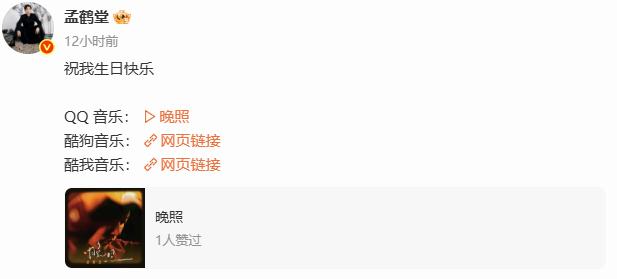 孟鹤堂迎来38岁生日,凌晨发新歌庆生,相声、跨界平衡发展!德云社孟鹤堂迎来38岁生日。凌晨,孟鹤堂发布新歌《晚照》庆生。这首歌,既是孟鹤堂给自己的礼物,也是孟鹤堂给大家的惊喜。要不说孟鹤堂是特明白一人儿,特清醒一人儿。做什么都给人一种有思路,有条理的既视感。就拿相声、跨界的发展来讲,孟鹤堂能够兼顾。拍戏期间,仍旧能够抽出时间出来举办专场。这两样都没耽误,还能在自己生日当天,给大家带来惊喜,送上新歌当礼物。